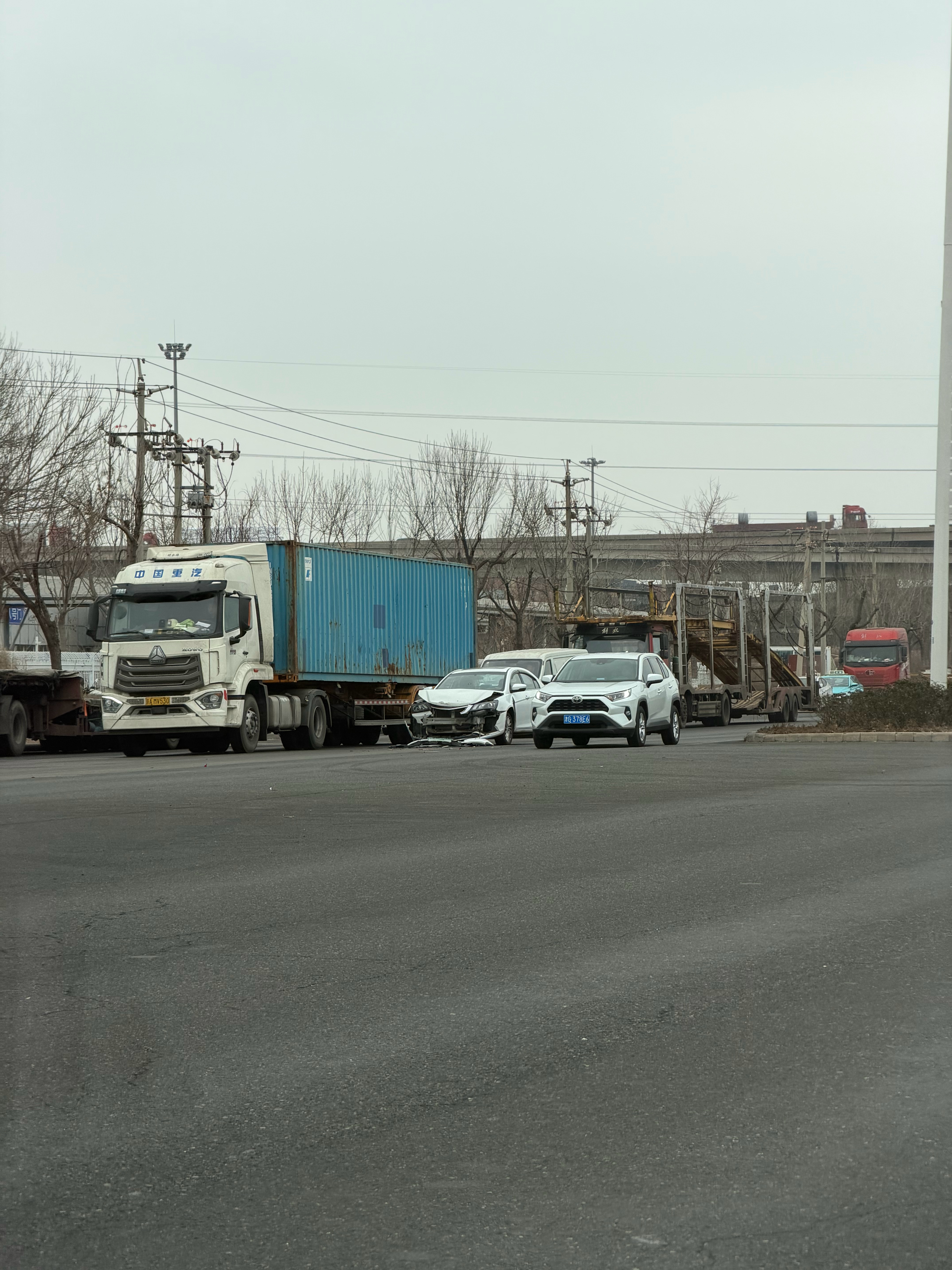 中间这台车太惨了我估计是追尾了大车,大车也懒得跟他纠缠,大车开走,只剩他自己面目全非了 天津
