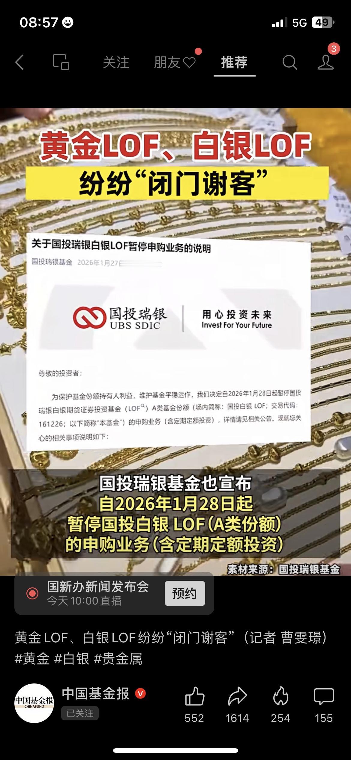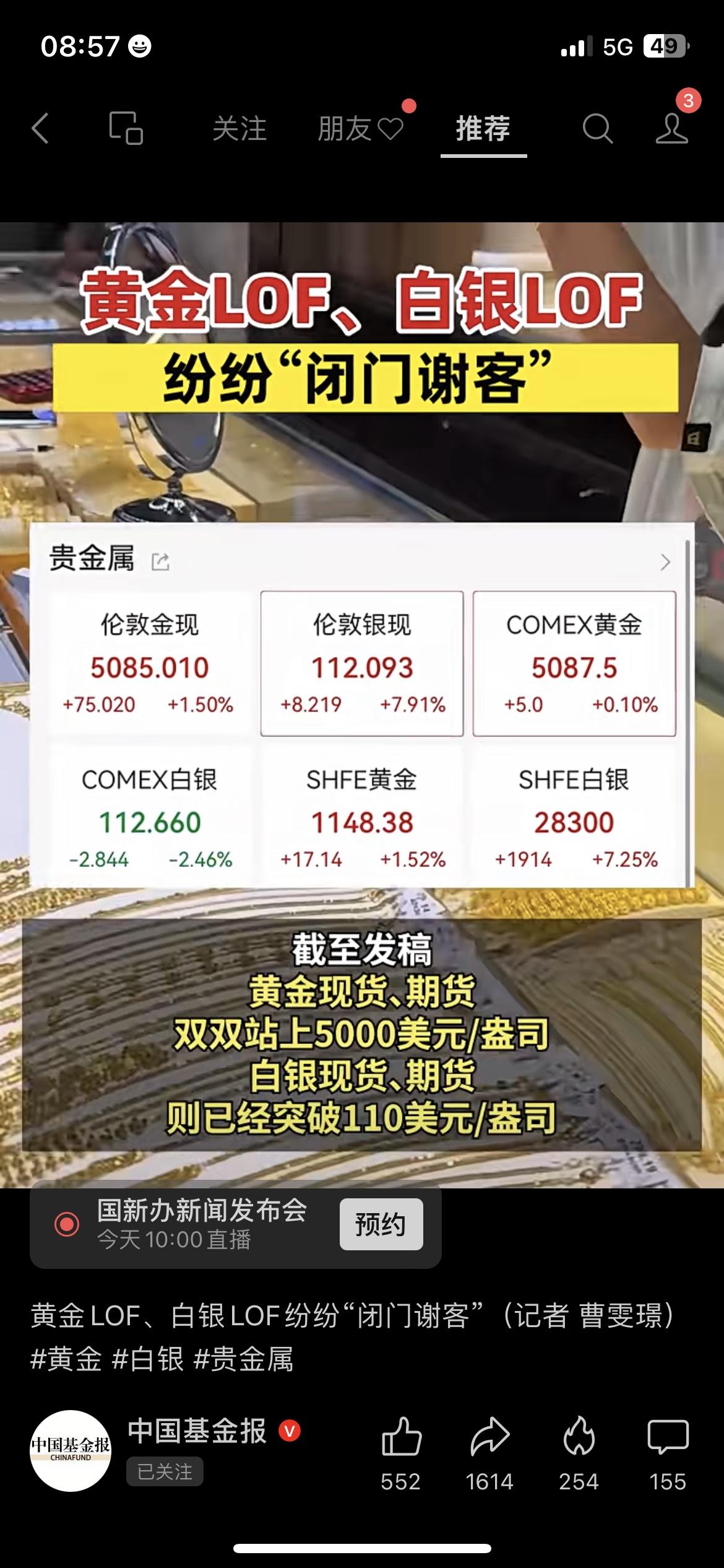 黄金破5000美元!基金却直接“关门”了? 伦敦金刚站上5000美元/盎司,白银价格也突破110关口,结果多只黄金、白银LOF基金突然宣布暂停申购!说白了就是行情涨太猛,资金扎堆涌入,基金怕规模爆仓接不住,也是想给市场的狂热情绪降降温。 你会等回调再买黄金,还是现在就果断下车? 黄金理财 财经热点 LOF基金 市场有风险,投资需谨慎