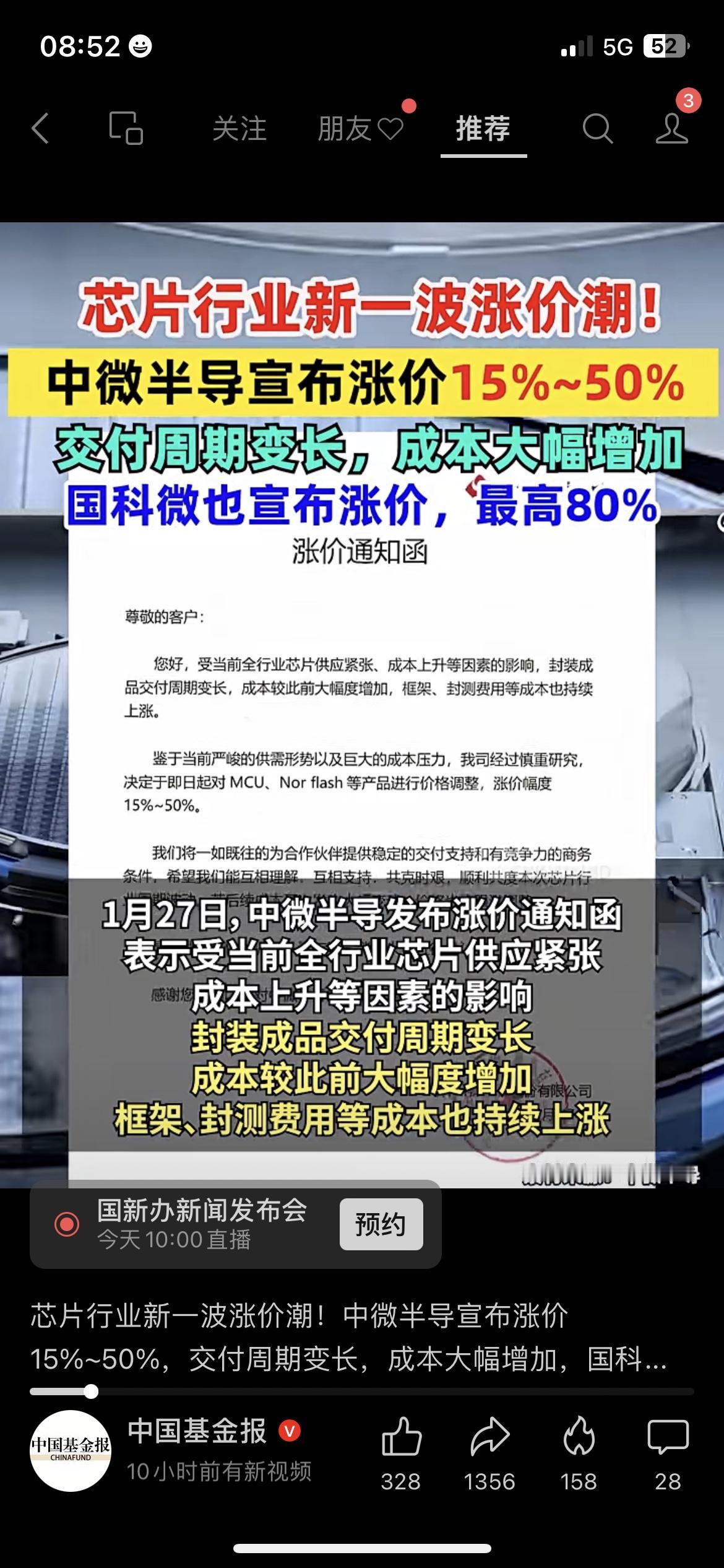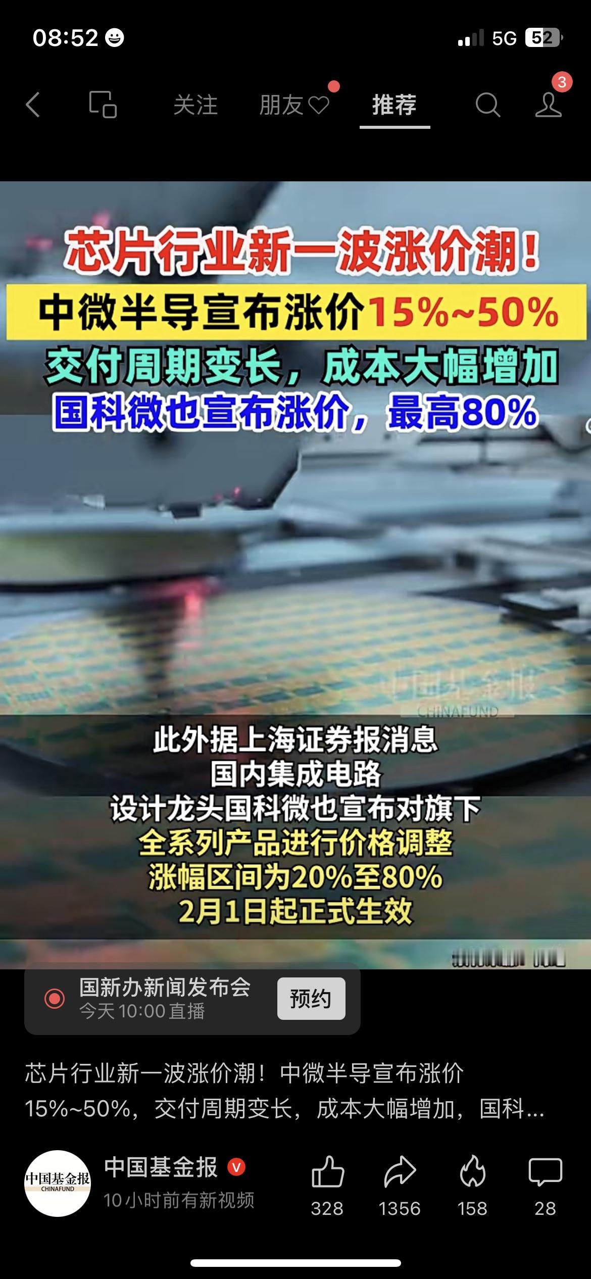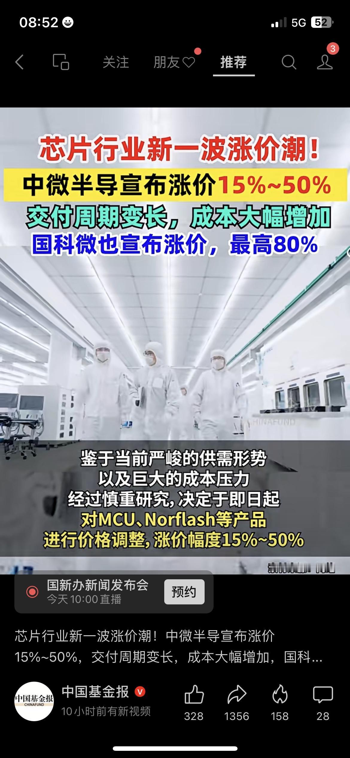芯片行业炸锅!中微半导直接涨50%! 中微半导宣布产品涨价15%-50%,国科微更猛,最高涨80%!原因是供需紧张+成本飙升,交付周期也拉长了,这波涨价,手机、汽车等终端产品大概率要跟着涨。 你会提前囤货电子设备吗? 芯片涨价 财经热点