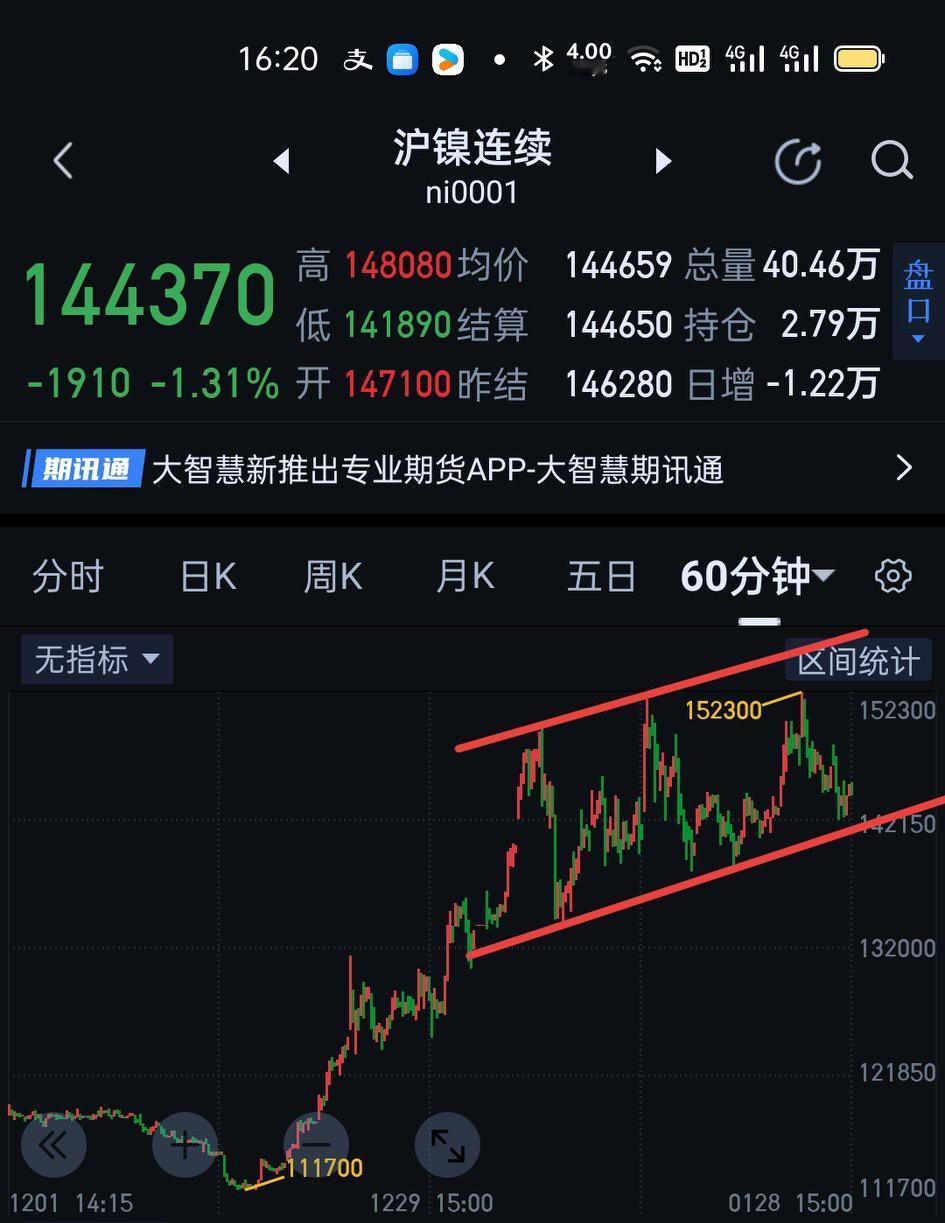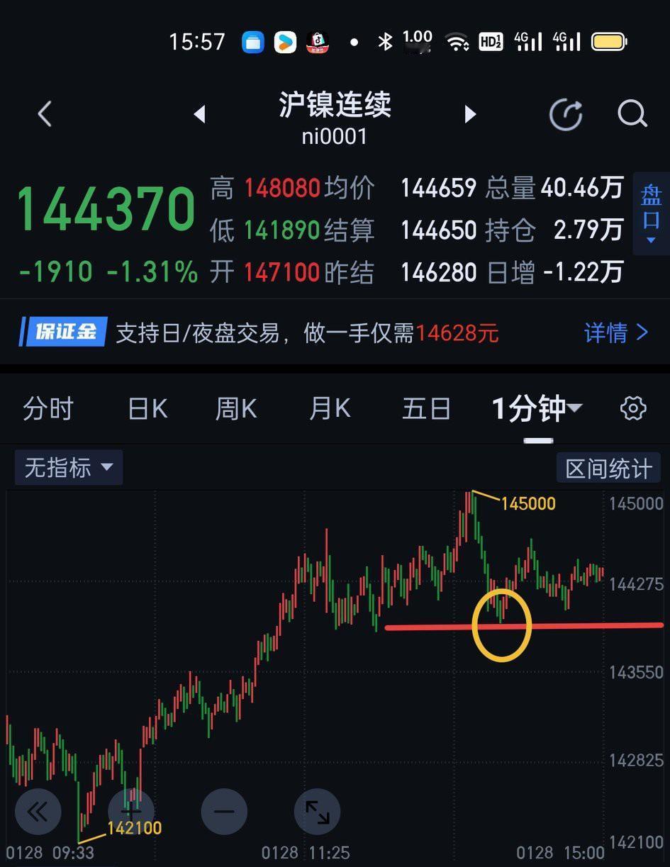 沪镍商品期货,夜盘可观察短期的买点呈现。沪镍五分钟中图上看,现在处于第二个1分钟中枢构建中。夜盘143910能否有效站稳是关键。站稳,当下的五分钟一笔上继续生长,后面要观察是否能回到第一个一分钟中枢。如果143910被破坏,第二个一分钟中枢将完成构建,后面要观察是否围绕第二个中枢形成趋势背驰。如果由背驰产生三十分钟一笔上的走势,可暂当反弹看待。