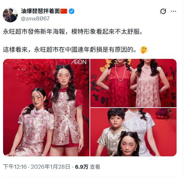 永旺选模特的眼光确实不怎么样!要不识字的,谁知道是永旺? 宣传超市,要么突出生态健康,要么突出价廉物美。可看这广告,把人的注意力全集中在模特脸上了。不知道的,还以为是做彩妆的呢! 不知道这以马年为背景的氛围照,是针对全球的,还是只对中国区的? Source: X