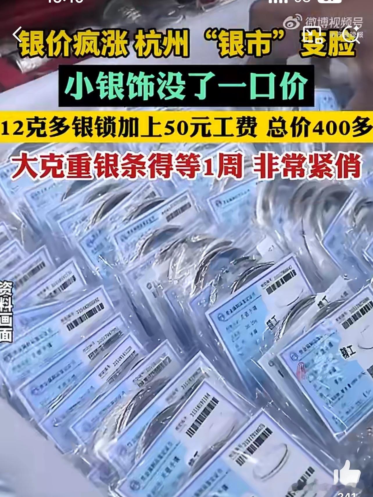 银价疯涨后银饰一口价变克重计价早知道当时多买点银镯子了呜呜呜