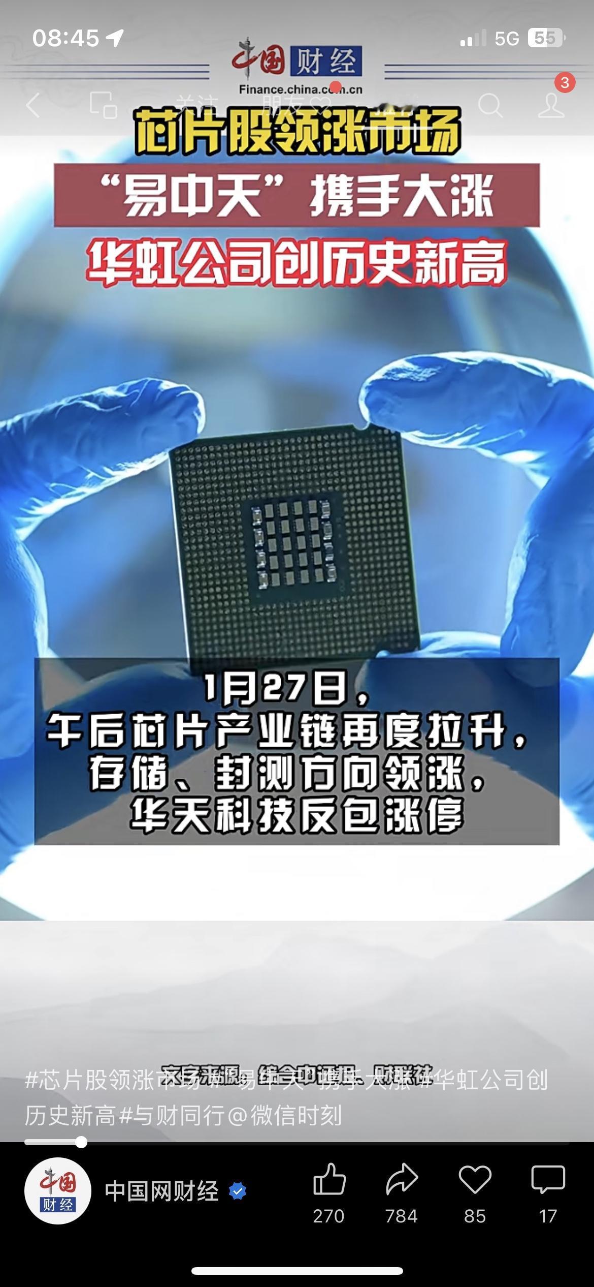 今天(1月28日)A股芯片股太燃了!存储芯片带头冲,华虹公司大涨5.93%再创新高,气派科技、中微半导等多股涨超10%,整个半导体板块再度走强,股民朋友是不是都盯到了? 作为国家战略赛道,这波涨势可不是瞎涨,背后是存储涨价+国产替代双轮驱动,还有北向资金持续加仓,妥妥当下市场核心热点!不管持有的还是想关注的,都得盯紧板块资金流向和龙头走势~ 毕竟A股行情轮动快,热门赛道机会多但也得理性看待,别盲目追高! 你今天关注到芯片股的涨势了吗?手里有没有半导体相关持仓? 芯片股 A股今日行情 财经热点 半导体板块存储芯片概念股