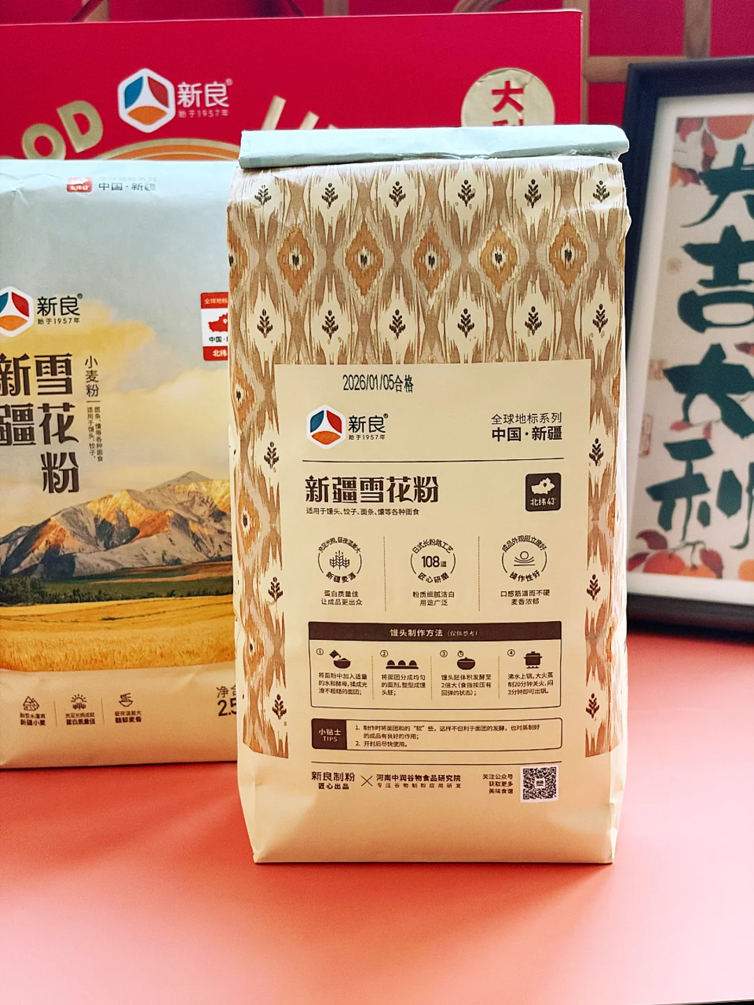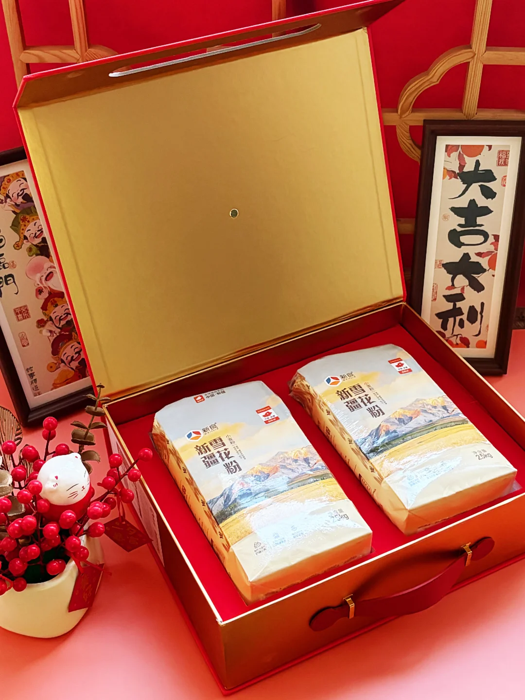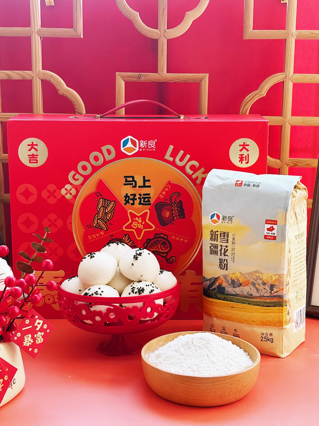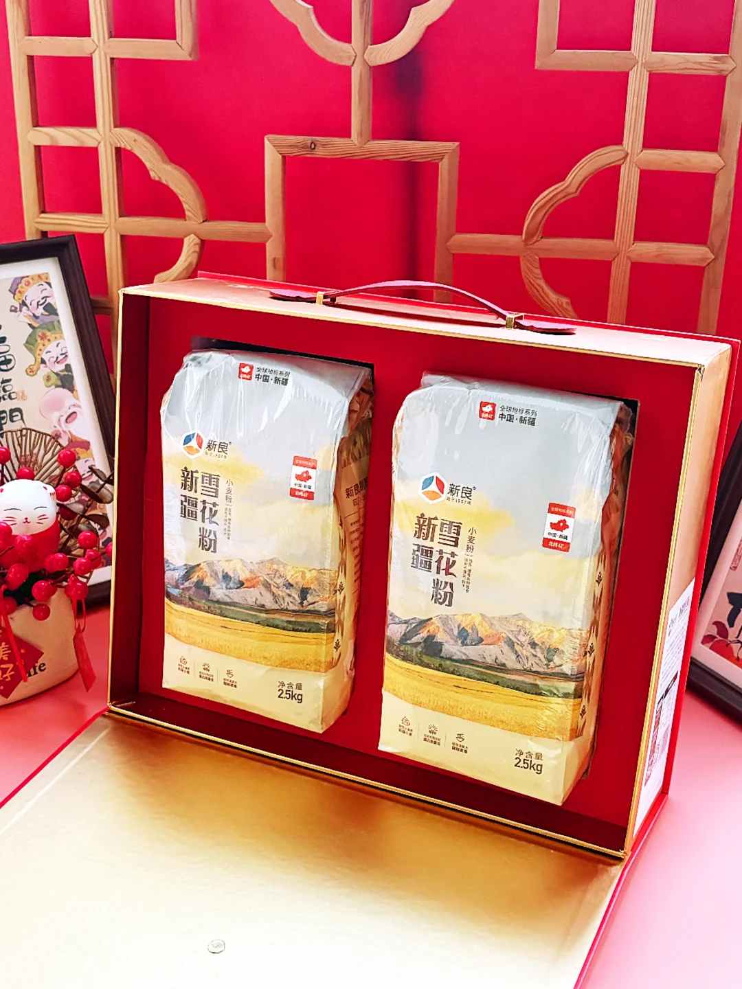 春节送礼选品难,烟酒茶点落俗套,保健品不实用,新良马上有钱年货礼盒真是及时雨。 新良新疆雪花粉马上有钱限定礼盒,颜值质感双在线。新疆天山雪水滋养的麦芯精粹,送的是地域好味,更是团圆心意。5KG礼盒分量充足,独立内袋方便拆分;礼盒高端大气年味足。新良是家庭烘焙行业领导品牌,不管送长辈、送亲友,都能拿得出手、吃得安心。