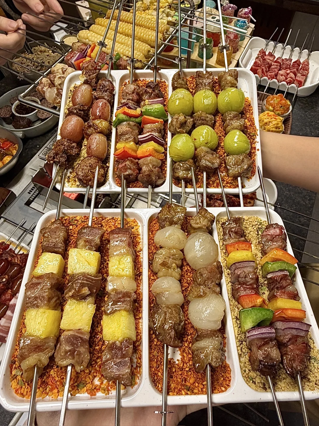 苹果奶冰、百香果奶冰、橙子麻薯……真的只要9.9r……他家叫重磅串城,还有延边烤肉、宫后夹肉、各种甜品雪花冰也好漂亮好好吃啊🤤真的值得n刷!!