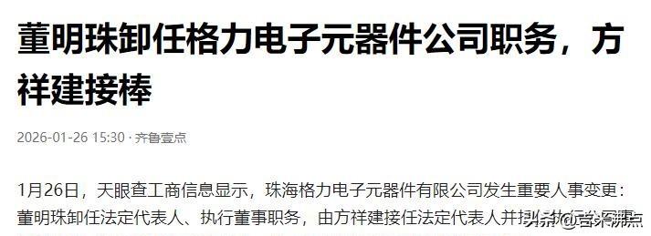 董明珠卸任芯片公司法人,网上吵翻天,她到底在干什么? 她没退,也没放权,只是把活儿交给了干了二十年的老工程师。 格力芯片卖了3亿颗,良率85%,可没人提这事儿。 1月26日,天眼查一更新,很多人就慌了——“董明珠卸任格力芯片公司法人”。结果点开一看,卸任的是“珠海格力电子元器件有限公司”,不是上市公司,也不是格力总部,是2022年才成立的全资子公司。同一家公司,去年6月刚把零边界集成电路的董事长也换掉了。两次换人,接的都是同一批人:方祥建、李绍斌。一个2004年进厂,管过质量、生产、供应链;一个带团队把IPM模块做出来,又拿下车规功能安全认证。 他们不是空降高管,是格力自己养大的。公司技术岗里,87%的人干了15年以上,芯片团队92%是内部培养。这不是换人,是把芯片这块硬骨头,正式交给真正懂产线、懂流片、懂良率的人。 格力搞芯片,不是突然想起来的。2015年就自己做IPM模块,用在自家空调上;2018年成立零边界,2021年流片第一颗MCU;2023年碳化硅产线投产,同年拿下IATF汽车认证;2025年芯片出货3亿颗,营收破百亿,良率85%。有3家新能源车企在用他们的SiC模块,但不是“供半数芯片”——那是1月15日谈“人车家生态”时一句口语被听岔了。 网上老翻旧账,说格力手机卖不动、说董明珠看不上海归。可G3S手机是2015年的事,早停产了,二手平台几块钱甩卖,跟现在芯片业务八竿子打不着。她当年说“大学生送快递没出息”,是在招技工现场讲的,背景是产线缺能焊PCB板的老师傅。真金白银呢?150亿研发投入全靠经营性现金流,没拿一分钱补贴,研发人员占员工总数近五分之一。 王自如1月24日说的那句话,原意是:“她能把大目标拆成每天该干的三件事,然后盯着做完。”不是吹人,是在说这套打法真管用。格力自建芯片厂从立项到量产只用了26个月,行业平均要54个月。工程师平均34岁,七成多是硕士,这些都写在2025年人才白皮书里。 格力芯片走不了捷径,靠的是几千台空调、几万套储能设备当试验场。它不靠资本讲故事,也不等政策输血,就是闷头做,做出来再用,用完再改。上游EDA工具卡脖子?有。车规前装渗透率才7%?确实低。组织跨部门扯皮?肯定有。但这些事,不用喊口号,也用不着谁来点赞。 董明珠把芯片公司的章交出去那天,没开发布会,也没发微博。工商局系统自动同步,仅此而已。