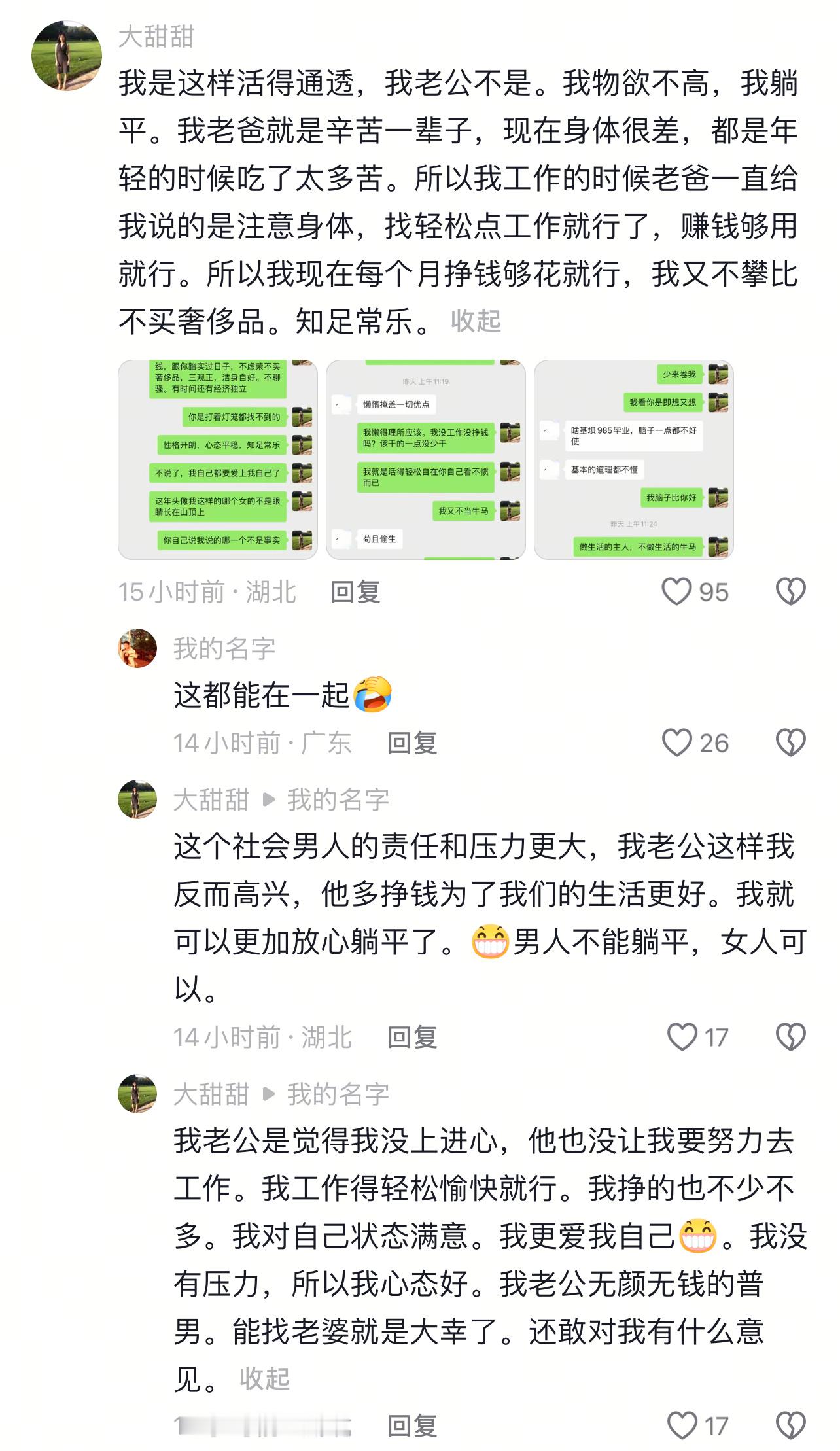 能理解老公的不容易,又能对生命有这样的理解,心态也是可以