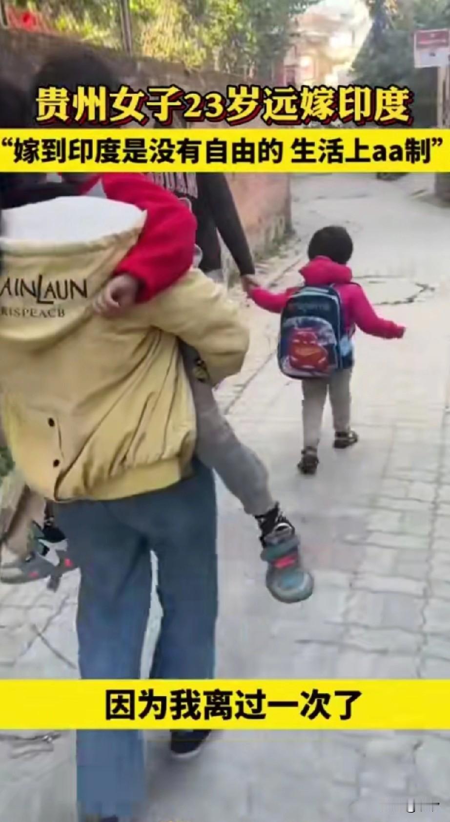 贵州23岁的女子嫁到了印度, 她在网上分享了他的印度生活, 她直言嫁到印度是没有自由, 晚上是不允许出门的, 白天出门老公和婆婆要陪着, 老公挣的钱是不会交给他的, 她和老公生活上是aa制, 大钱是老公出的, 小钱谁有谁出? 感觉很像被拐卖到了山区, 不让出门就是为了怕跑, 不过她表示有一次自己偷偷跑出去, 结果回来被关了三天, 不过即便是这样她也没有选择离婚, 因为她之前离过一次婚, 她不想再折腾, 可以看得出来她也很有自知之明, 即便她离婚回到贵州, 估计也很难找到老公了, 毕竟她的前夫是印度人, 很多国内男生是比较介意的, 只要她在印度生活幸福, 那也可以祝福她! 大家对于远嫁印度还羡慕吗?