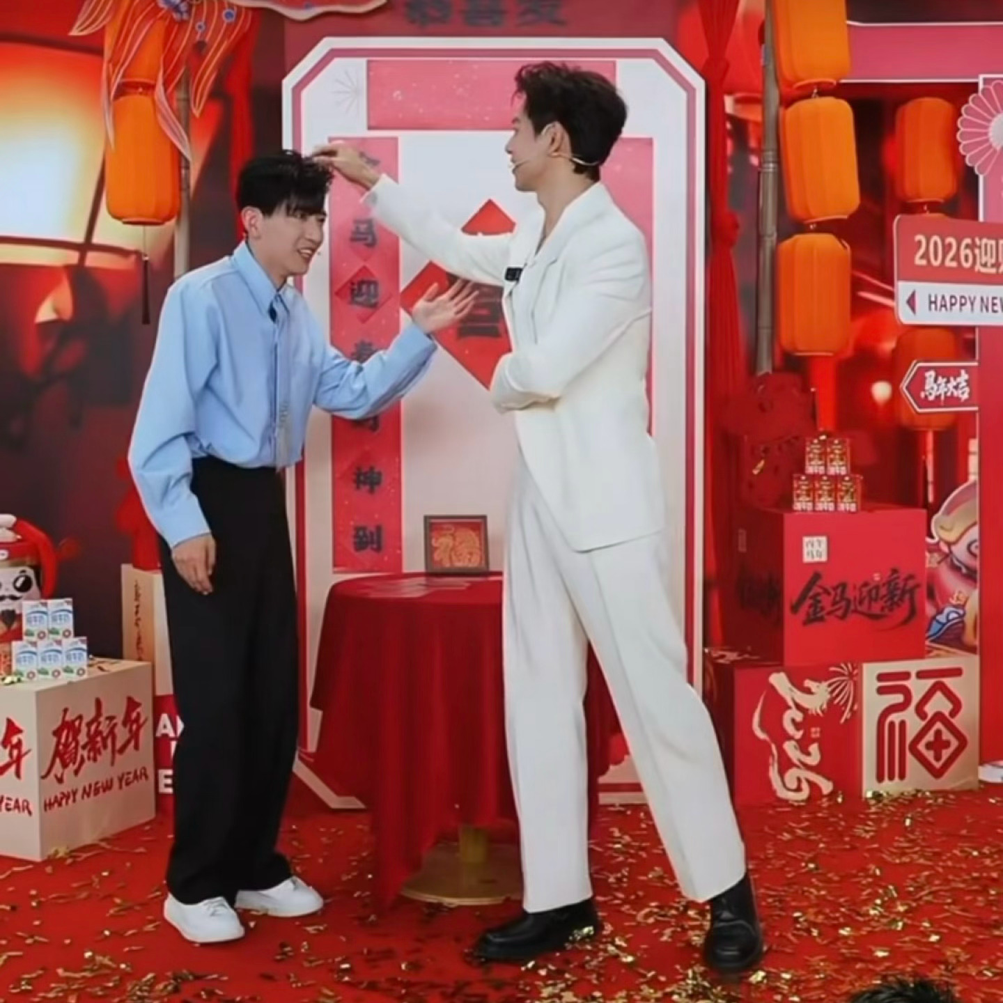 丁禹兮常华森同框,两个大帅哥聊啥呢,小丁手上还数着123丁禹兮常华森同框丁禹兮常