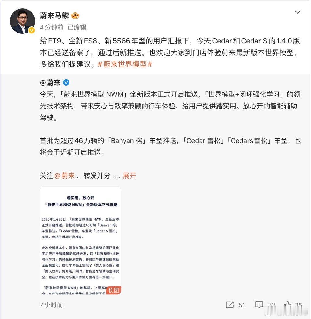 从NWM 2.0开始,模型底层就更多考虑到两代平台的兼容性,所以Cedar的车主不会等很久就能用上新版本了蔚来世界模型nwm