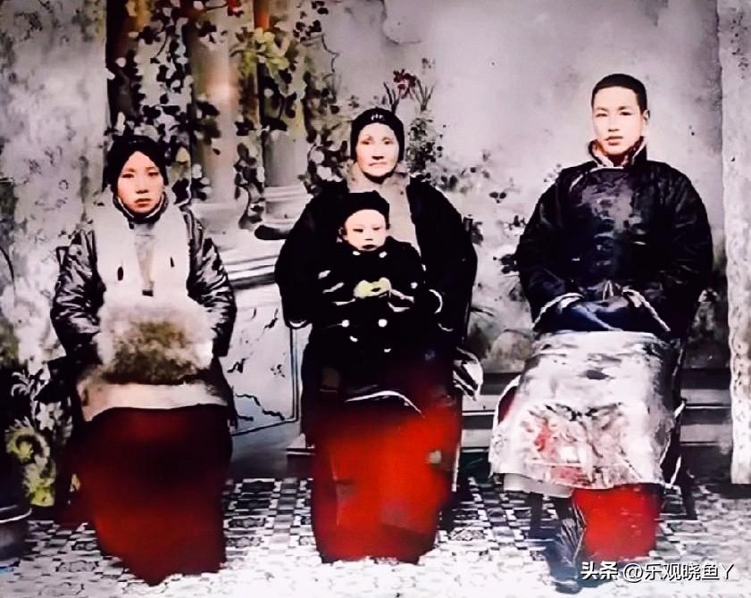 1910年代初期,年轻时的蒋中正与他的母亲王采玉、妻子毛福梅、儿子蒋经国的合影老照片。这可不是演员扮演,确是货真价实的本人,外貌呈现得十分清楚,一目了然!彼时老蒋发量真是可以啊。