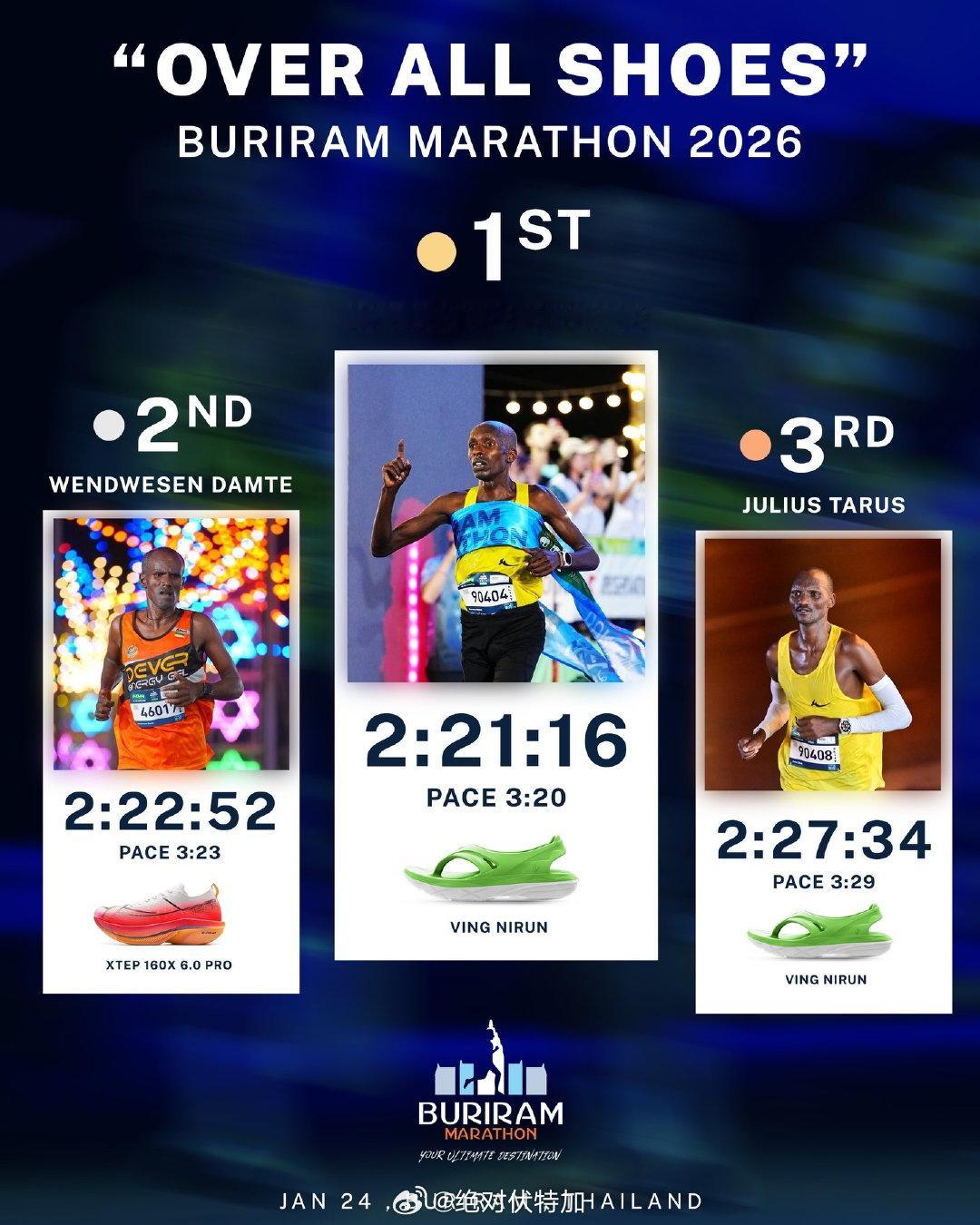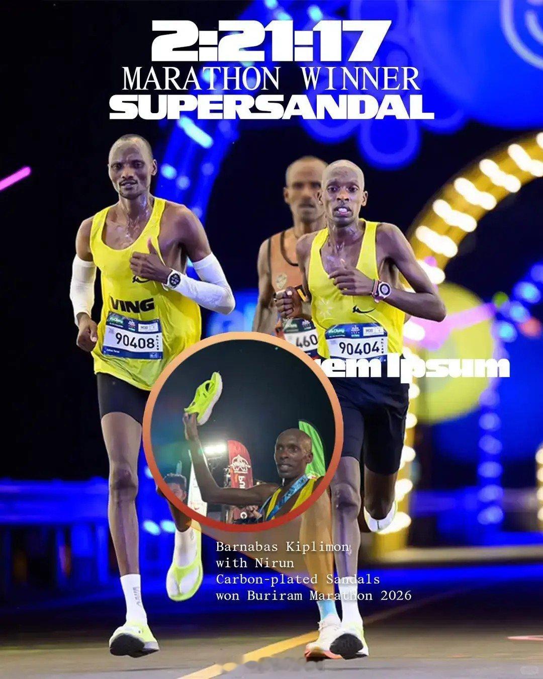 2026年刚过不到一个月,Khon Kaen Marathon 泰国孔敬马拉松、Burirum Marathon 泰国武里南马拉松上,泰国碳板跑步拖鞋品牌 VING 又创造了好名次和成绩。肯尼亚选手 Barnabas Kiplimo 成绩很稳啊。泰国 马拉松 拖鞋