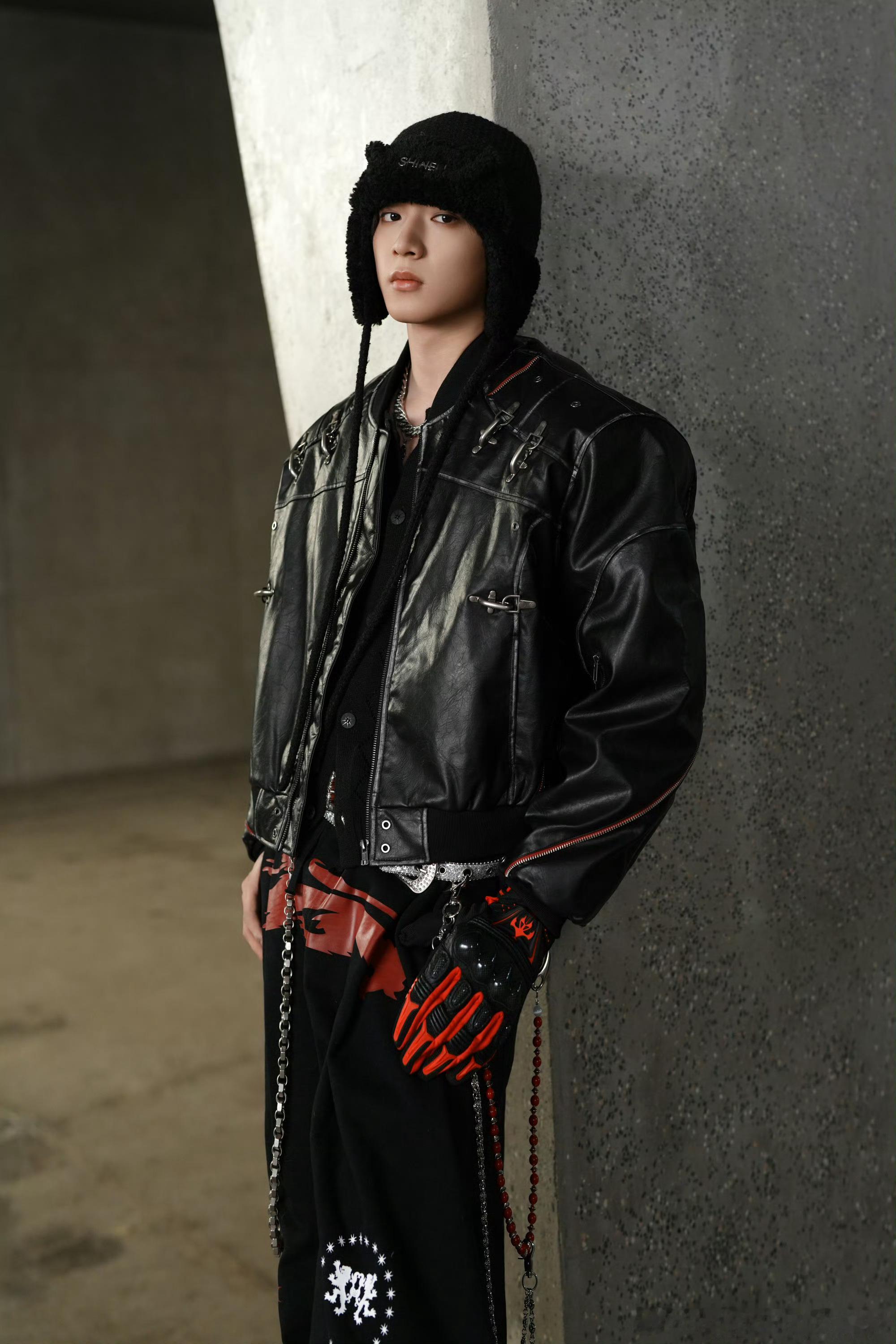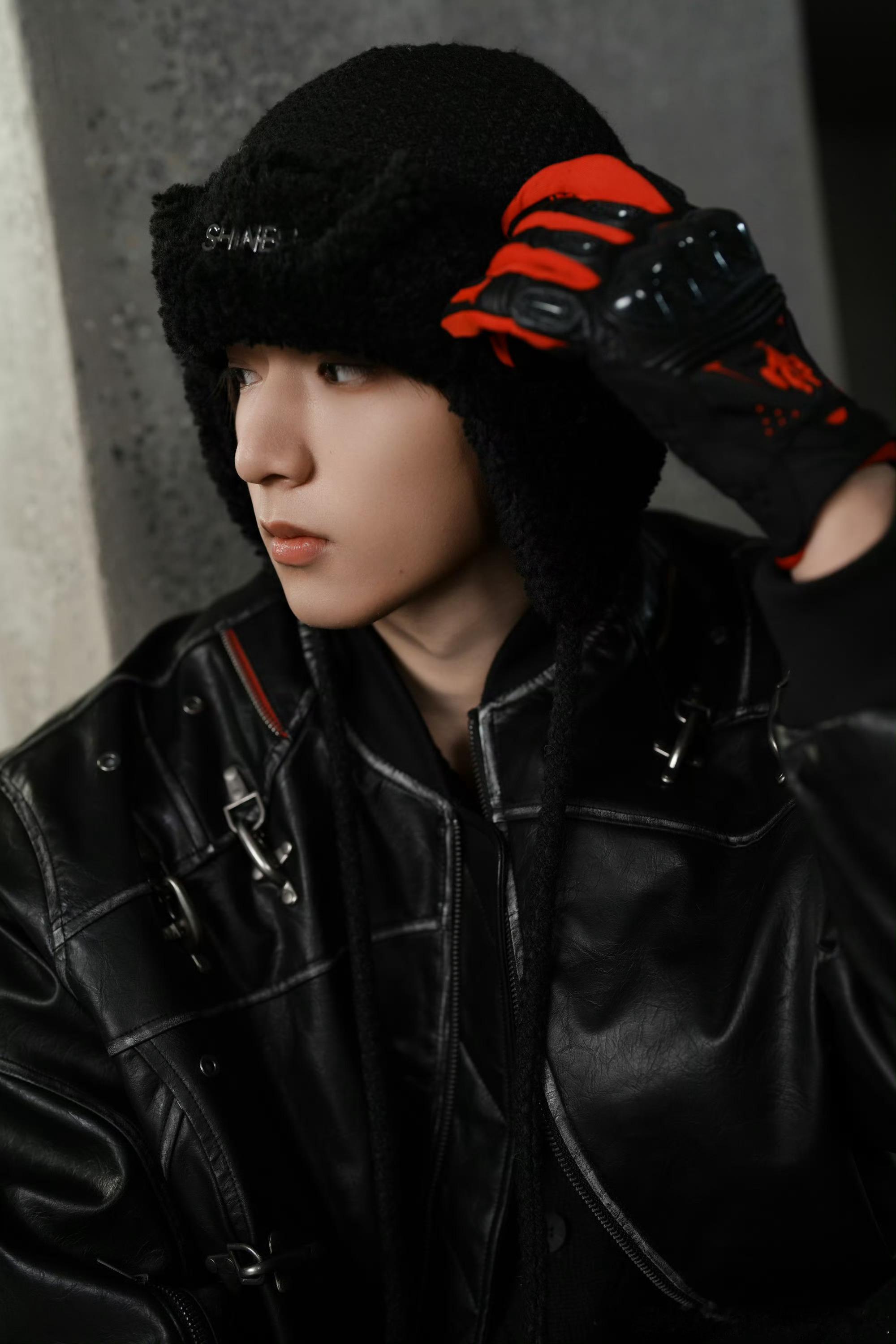 刘耀文 撕漫男刘耀文 穿搭博主 穿搭博主上线黑皮衣+雷锋帽+红黑撞色手套,这配置走出来直接原地喊老公歪头杀和单手插兜的气场拉满了