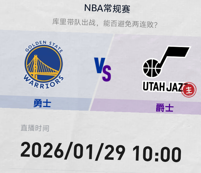 明早10点 金州勇士客战爵士库追大概率出战 勇士队能够避免连败双方预计首发勇士队:库里 波杰 穆迪 格林 波斯特爵士队:科利尔 贝利 马尔卡宁 威廉姆斯 乐福四连客最后一战 愿球员健康完赛金州勇士勇士vs爵士我的观赛搭子