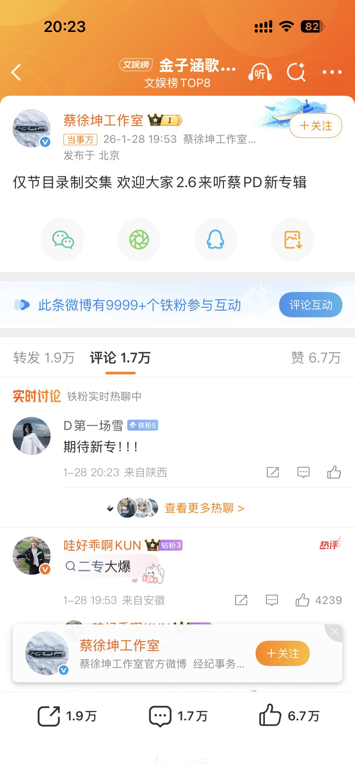 金子涵拉黑蔡徐坤,发的歌曲里的歌词是“你就是个大骗子”蔡徐坤工作室承认两个人在工作里有交集