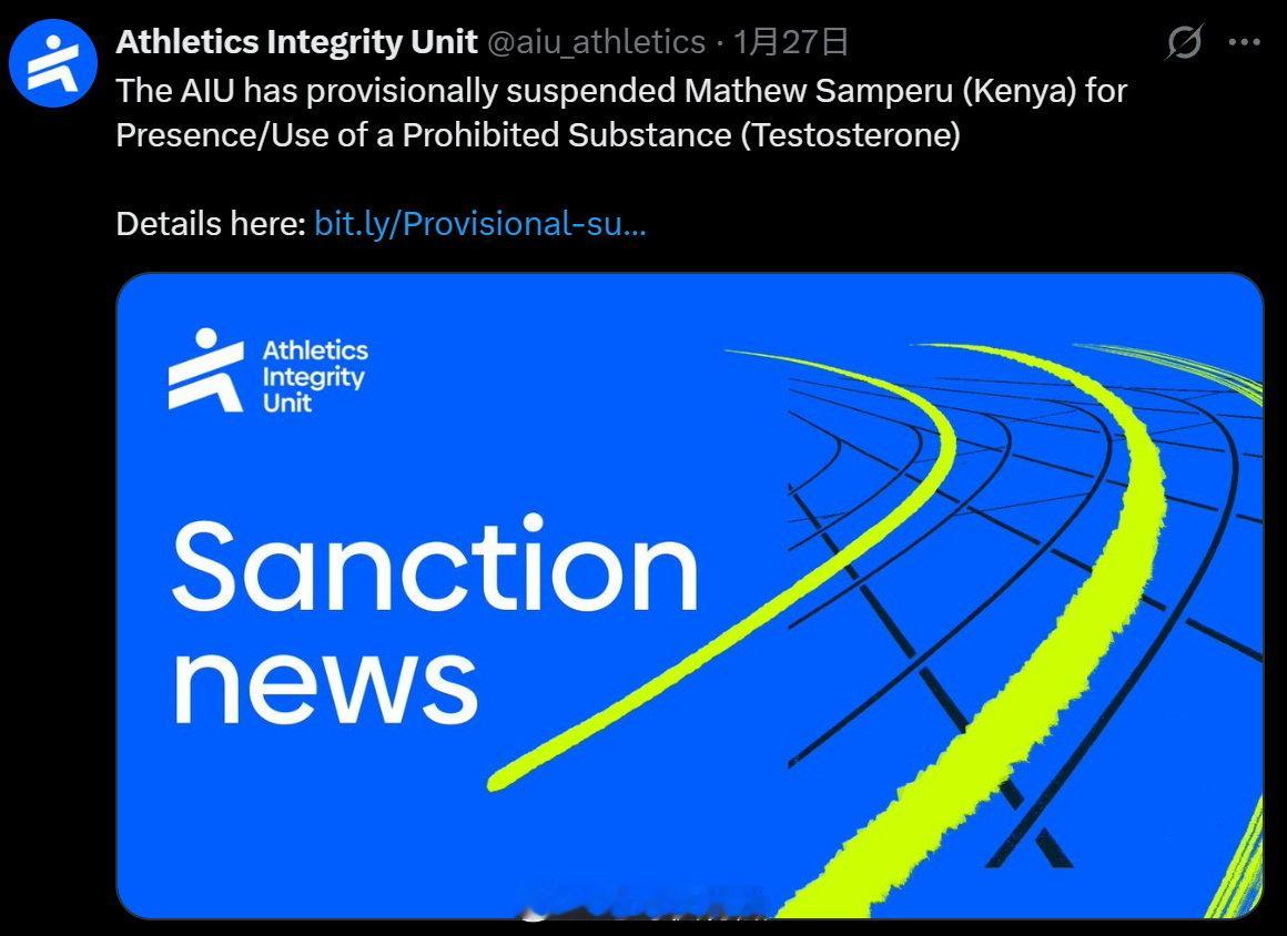AIU世界田径诚信委员会对肯尼亚的 Mathew Samperu 暂时停赛,原因是药检不合格。他2024泰国武里南马拉松首马夺冠 网页链接 当时就发现他是李宁赞助选手。不过后来很快转为安踏赞助,图3-4是2024伊斯坦布尔马拉松和2025塞维利亚马拉松。反兴奋剂 马拉松
