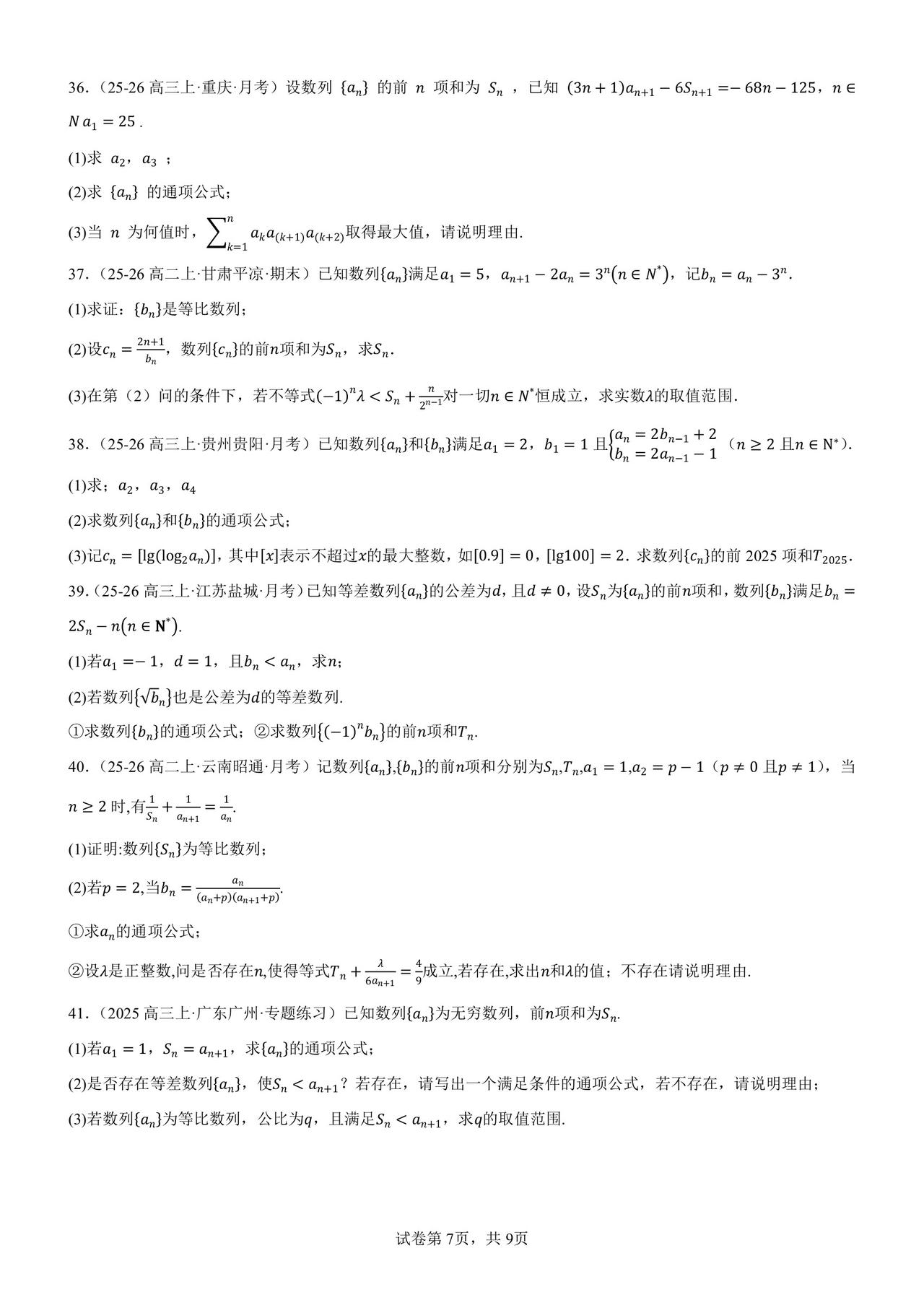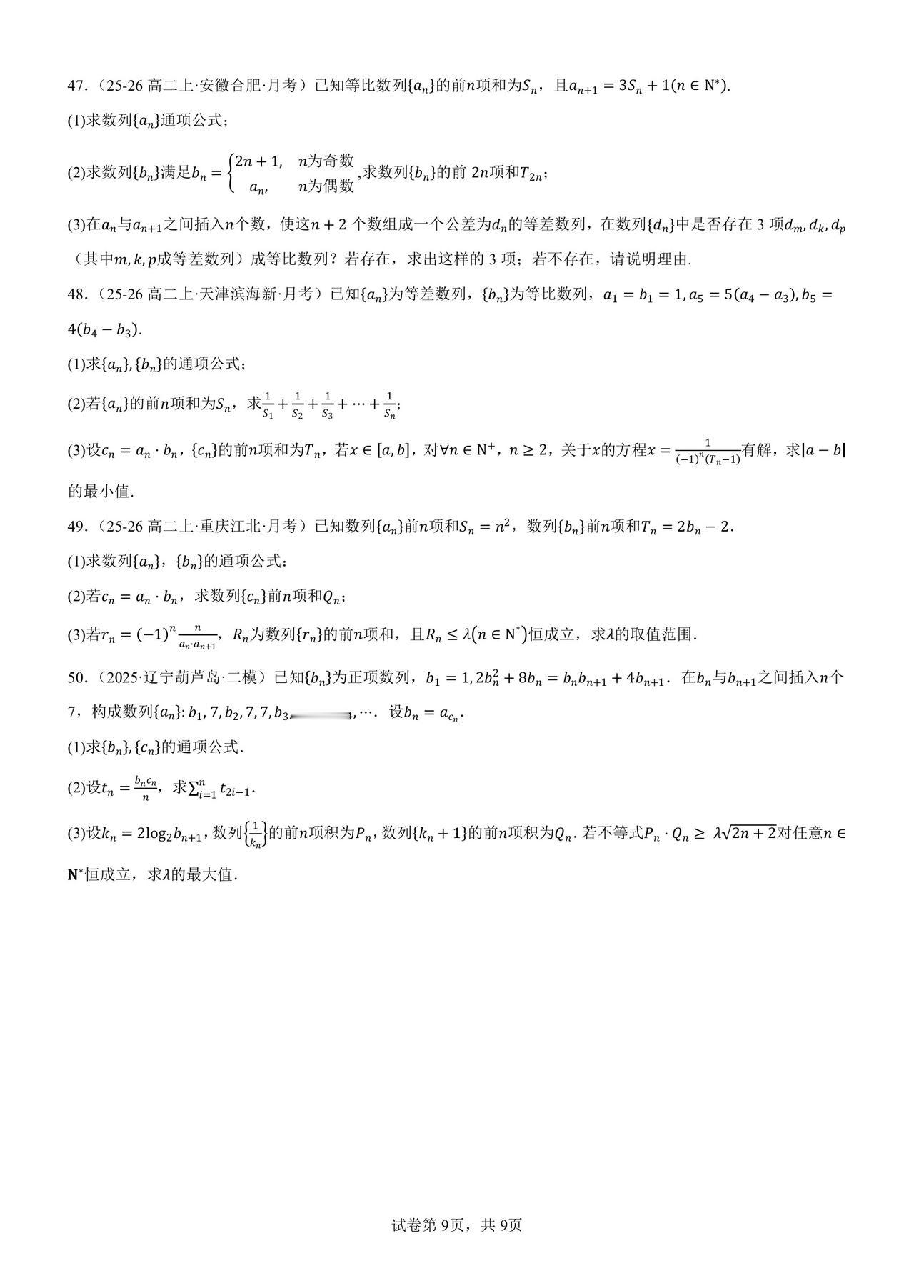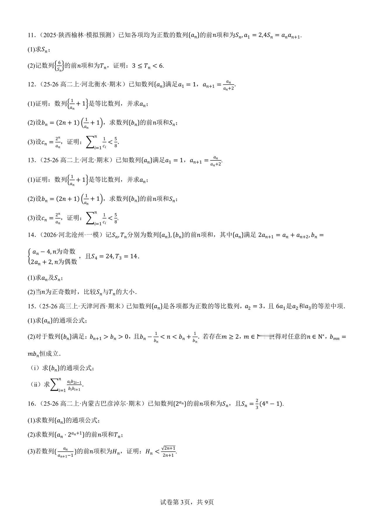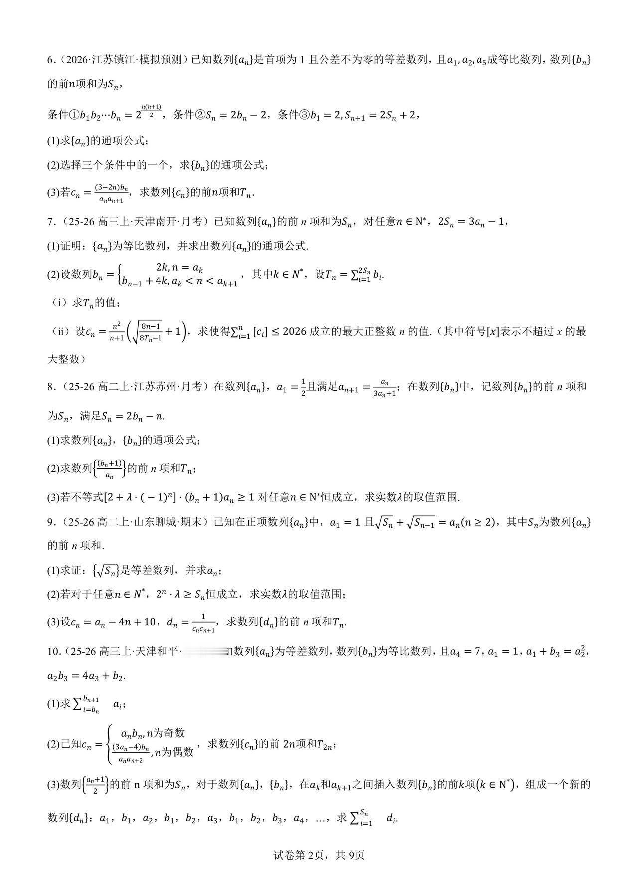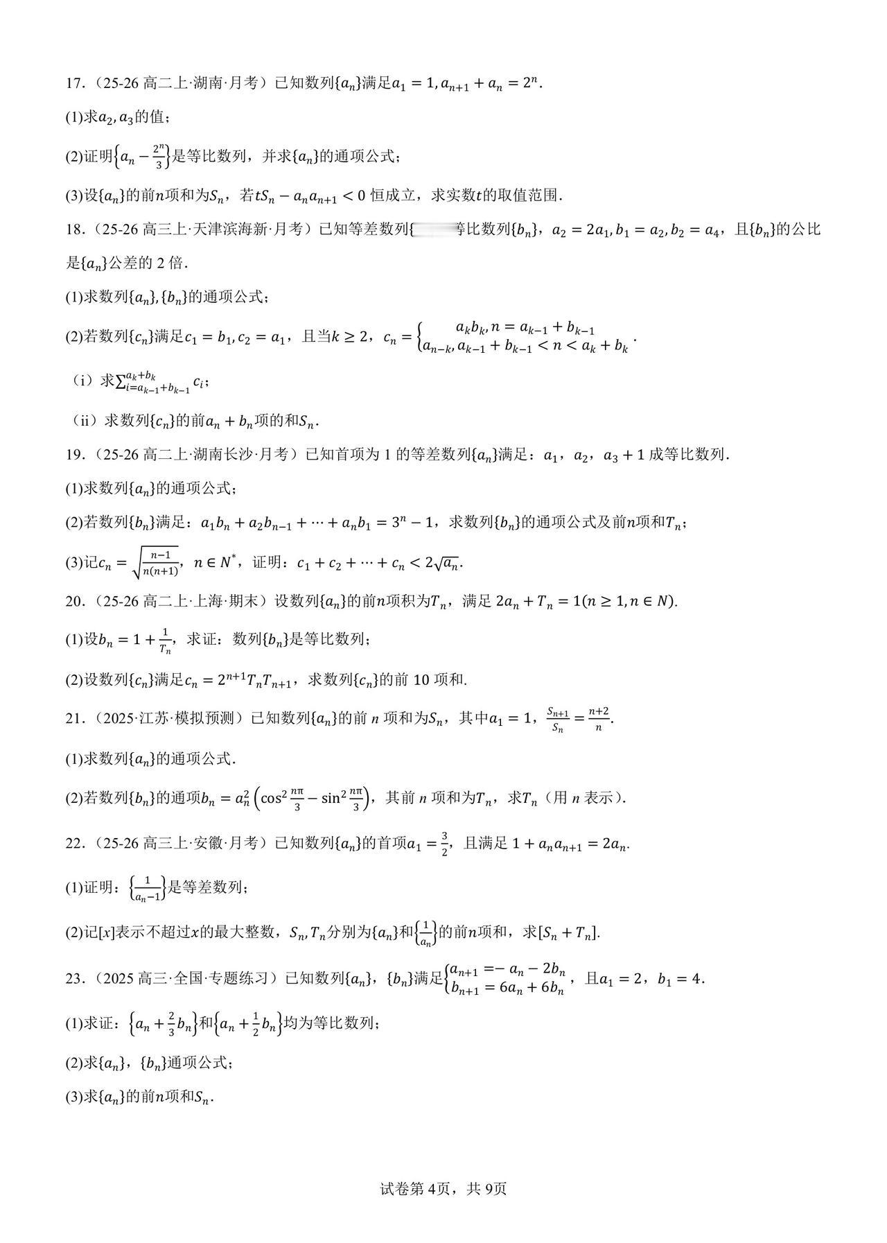 终于选出一份“正经”数列解答题专练 短短几年,数列已经变了模样 它攀上了圆锥曲线,概率,集合… 大家都忘了它最初的样子 高三模考都不怎么考:求通项,求和∑ 模考全面追数列新定义题 高考反押题,越热越不考 所以必备的基本一定不要忘 当然,这份练习也不是送分练习 也有学生比较为难的: 多参数,插项,去项, 取整,分奇偶,非常规角标… 50 题想做对 30 题以上还是有难度