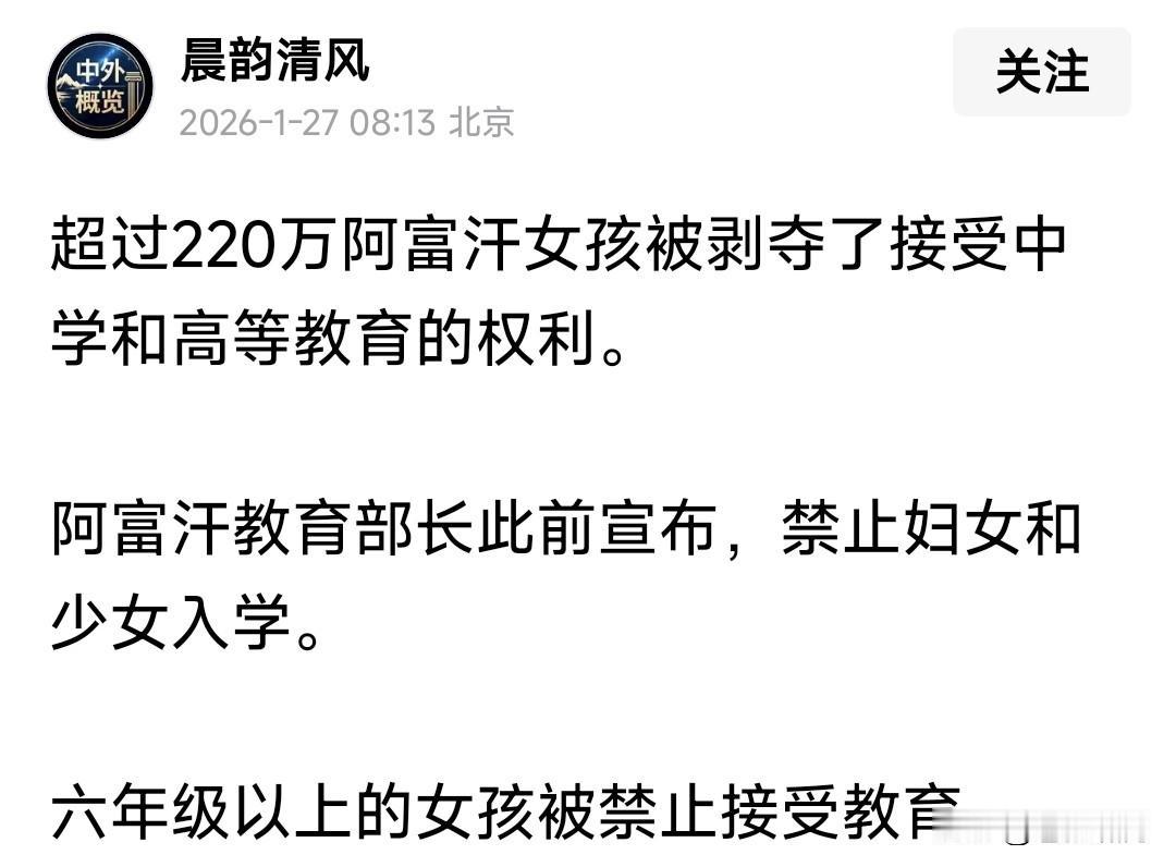 惊闻塔利班颁布新法典,竟禁止妇女与女童入学,220万女性失去受教育权利!还把社会