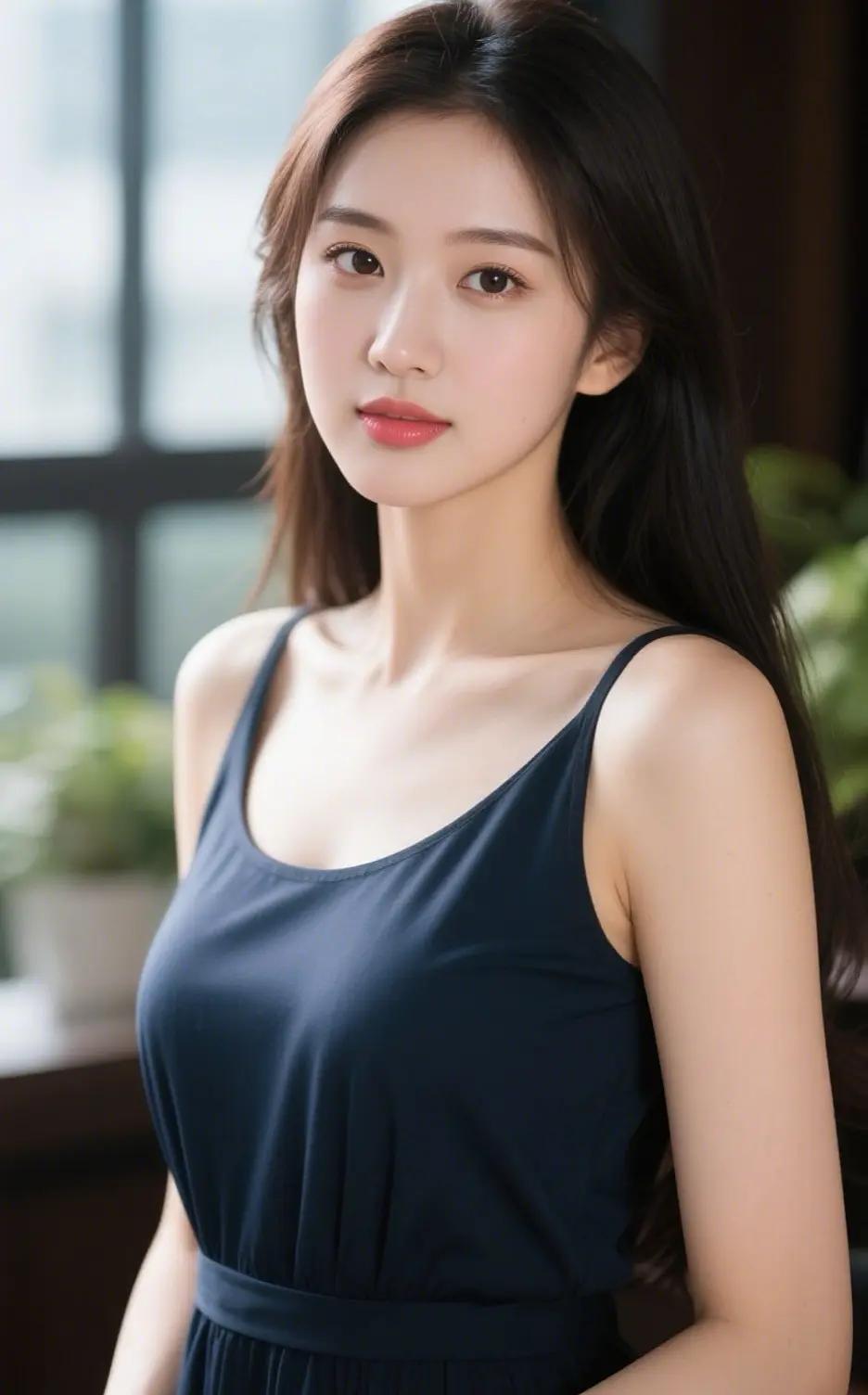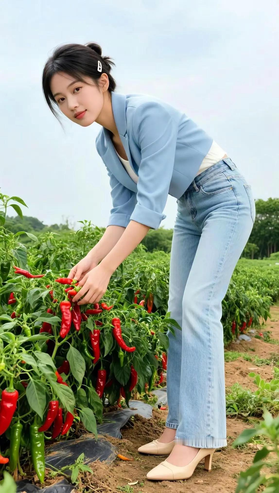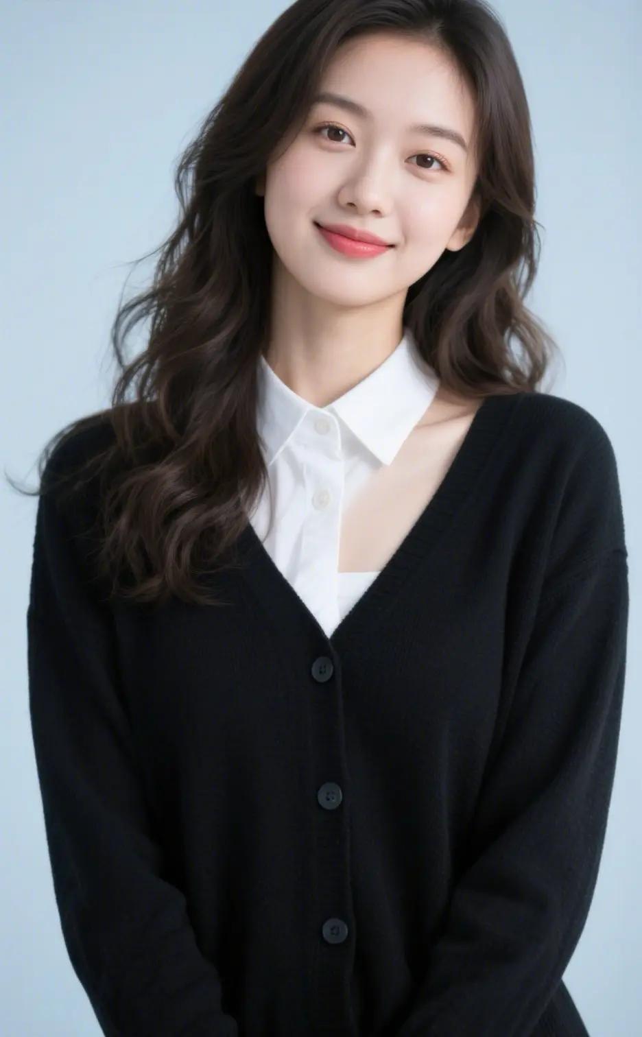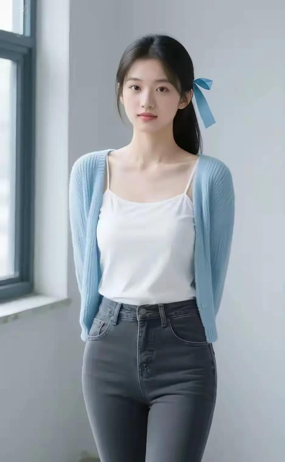 青衫立湖间沾着水汽的风掠过栏杆,她倚栏而站,浅蓝针织衫衬着舒展的姿态,恰似