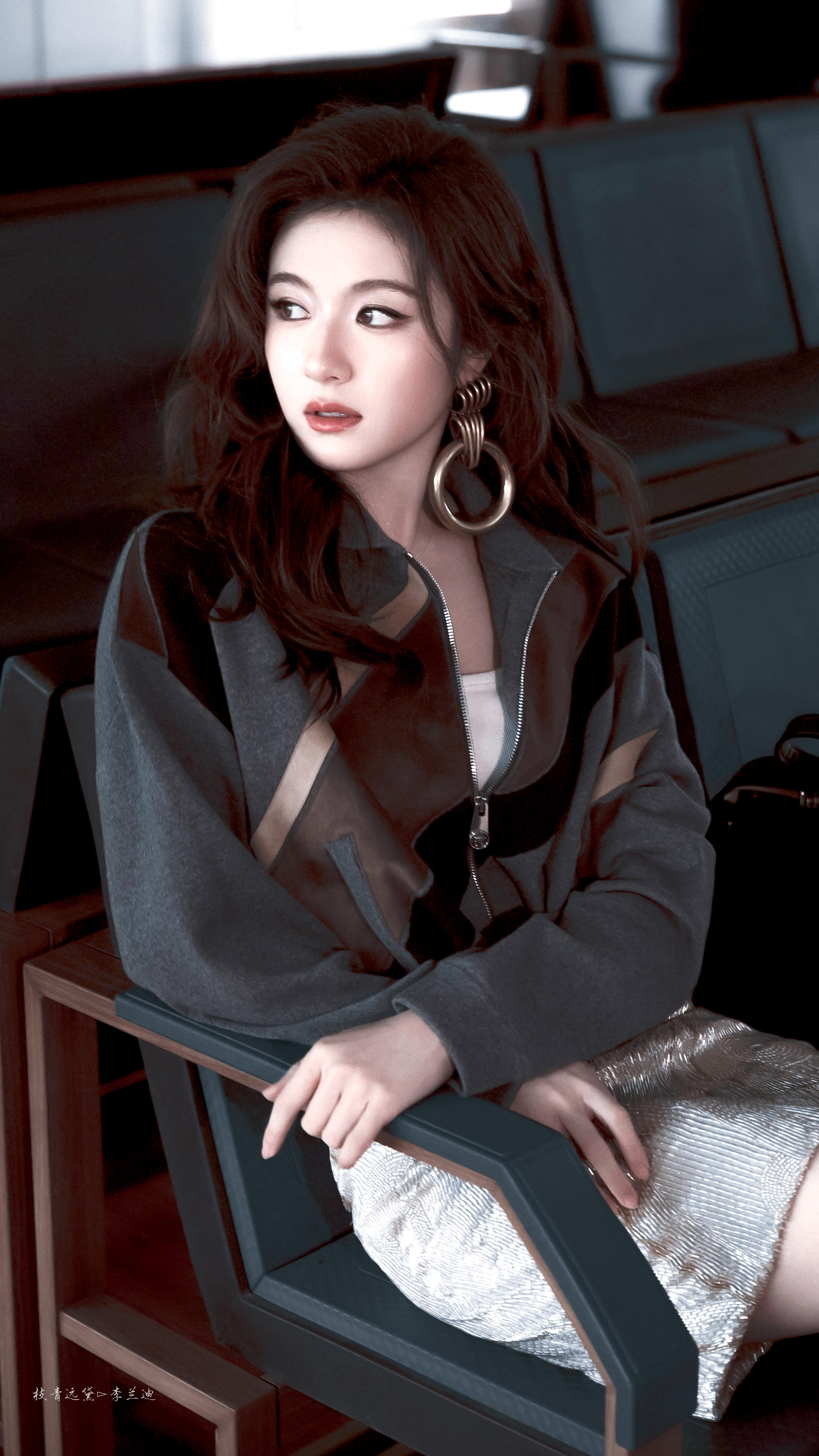 李兰迪身着拼接夹克与鎏金短裙,复古时髦。她靠墙抬眸满是疏离破碎感,怼脸拍时美到让