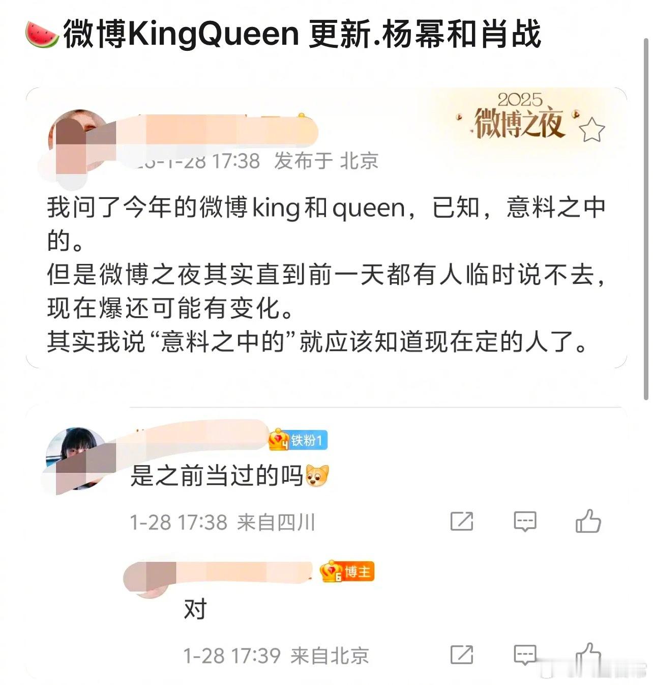 🍉网传今年的微博之夜King和Queen是肖战、杨幂,以最终情况为准