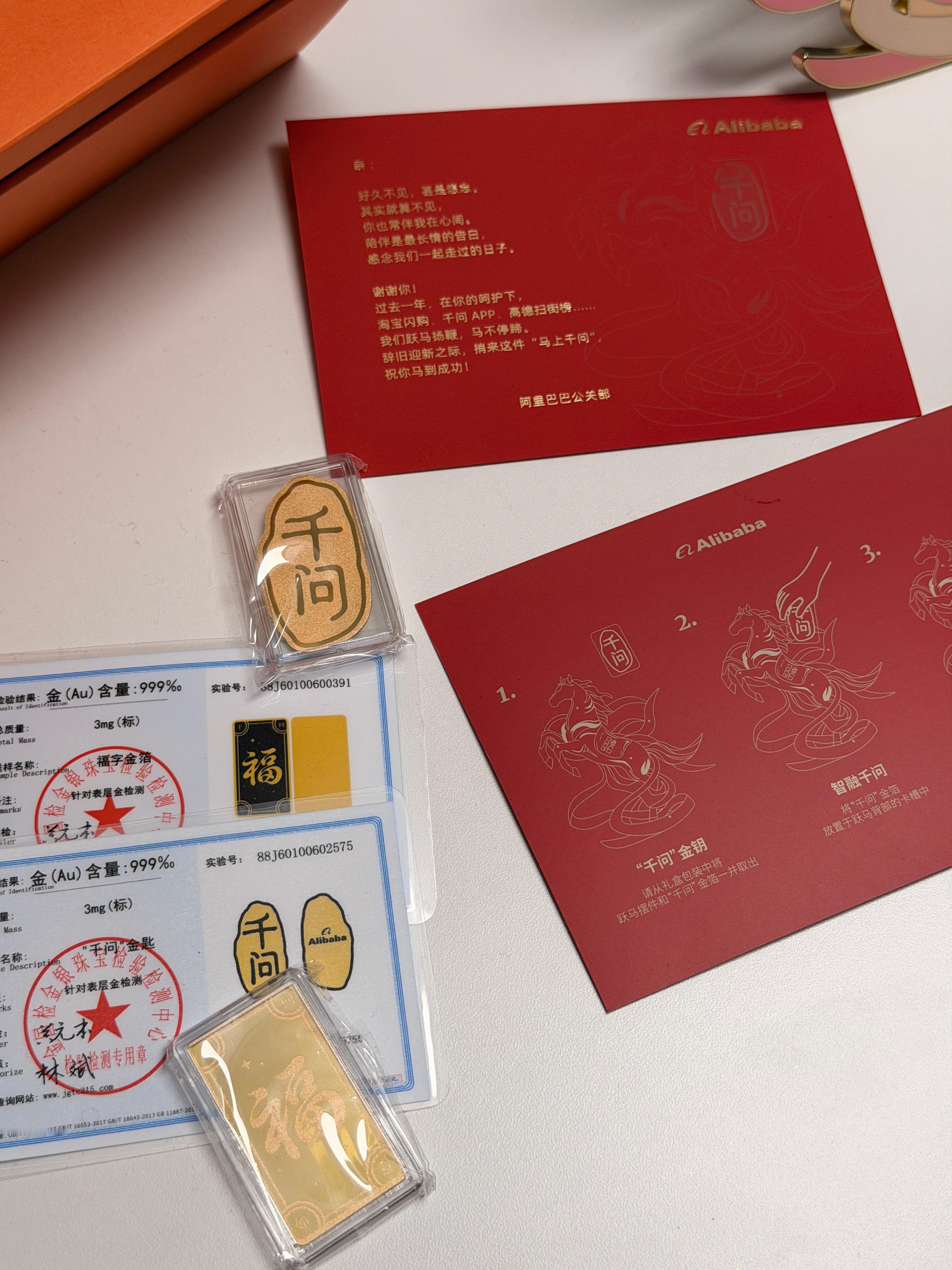 收到阿里千问新年礼盒里面真的有黄金马上有福,马上有千问