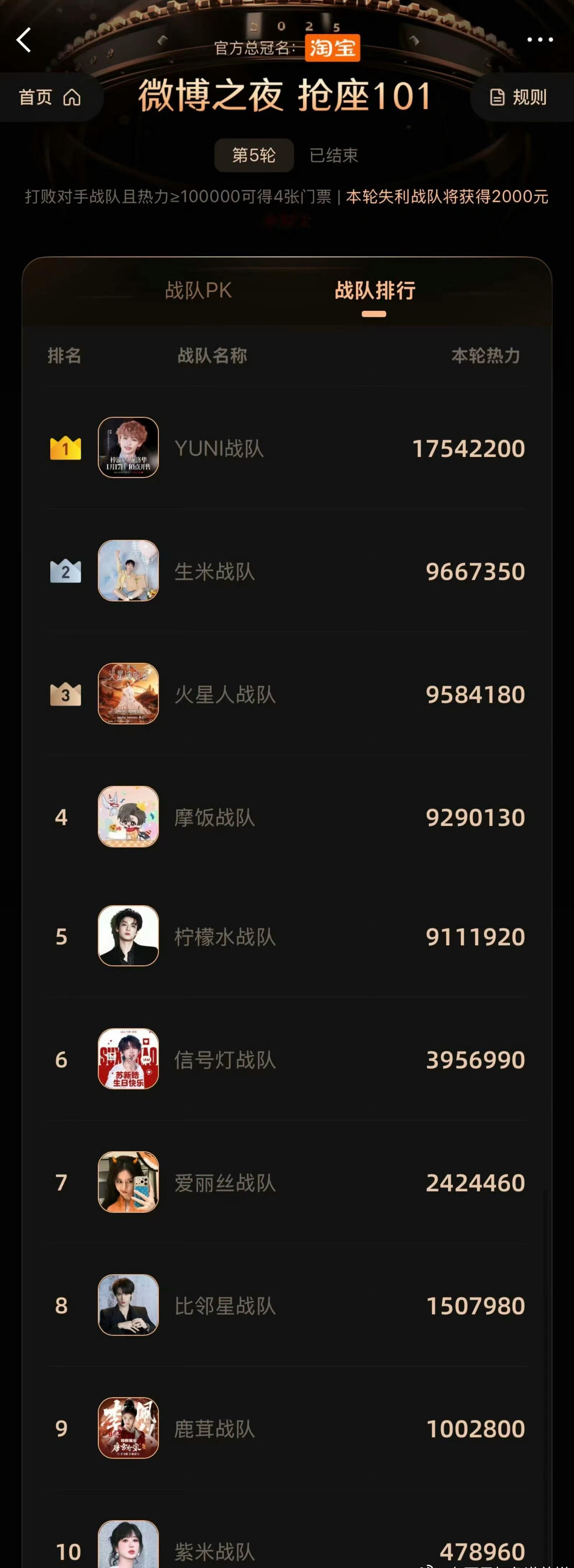 微博之夜抢座最后前十战队梓渝周深华晨宇刘宇宁田栩宁苏新皓迪丽热巴丁