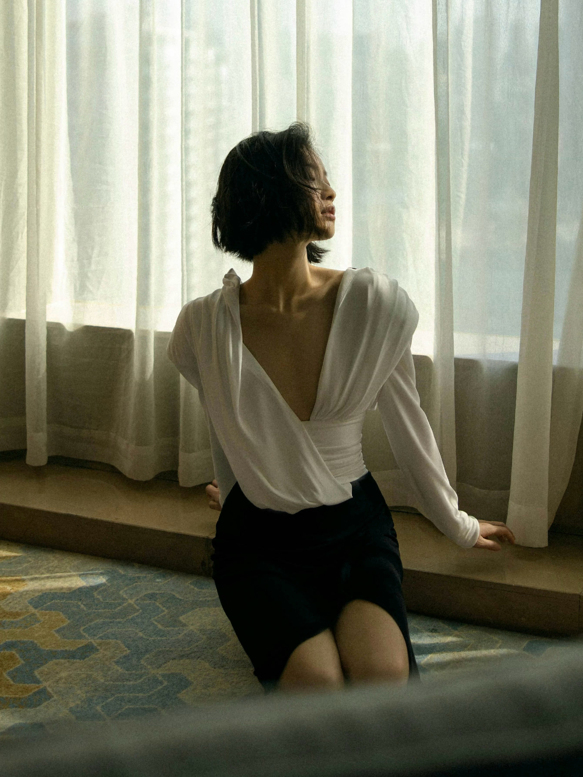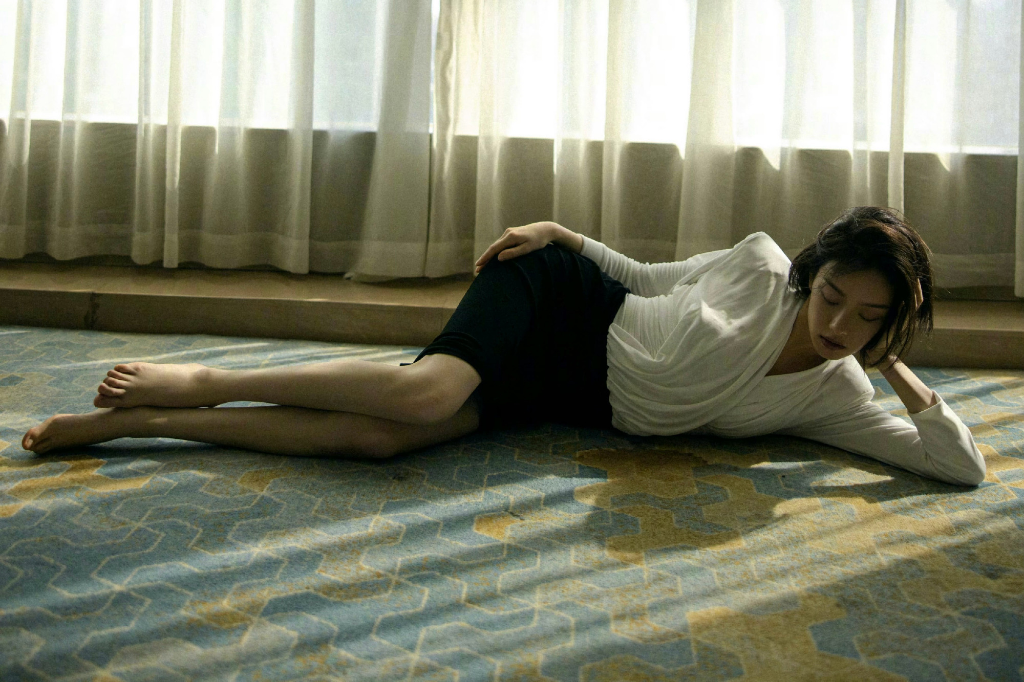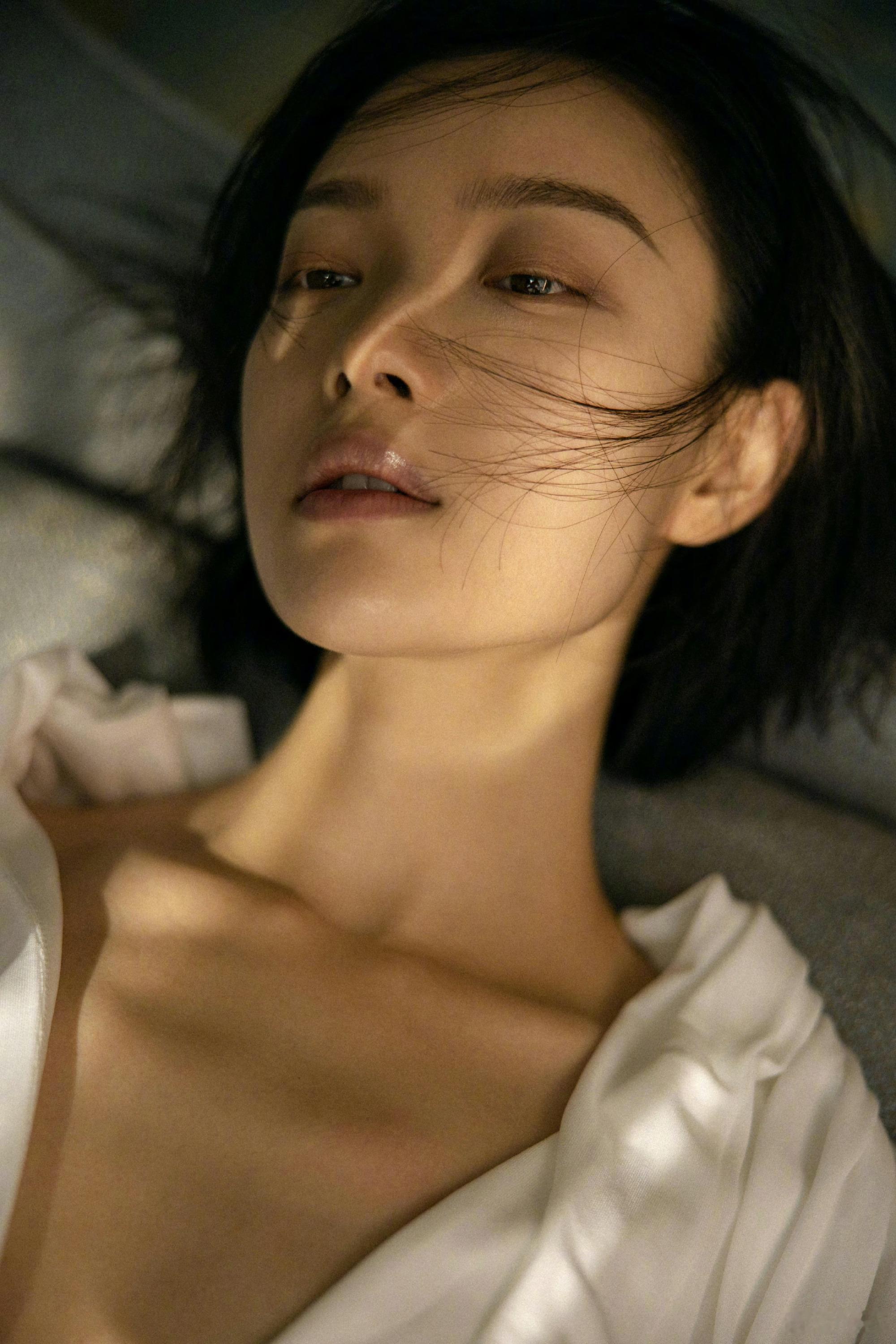 倪妮,短发白衣黑裙穿搭大片,轻柔的“睡美人”。倪妮