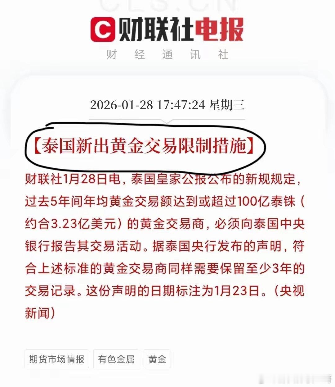 黄金白银大消息。黄金沸腾了,泰国和上海都出手干预,是风险还是机会。泰国最新黄金交易限制措施。中国上期所和上海黄金交易所,同时对黄金、白银、有色金属,提高交易保证金,与涨跌停板幅度,全部提高1%。昨天盘中,大家抱团有色金属,上面打压科技,打压商业航天,资金又抱团有色金属。这就是所谓的,有色生、万物灭。交易所开始出手降温,能压制住吗?贵金属是随着市场,行情波动涨跌,今天凌晨美联储不降息,金银再次大幅拉升。上面现在也是头疼,想要压制有些困难,除非动真格的。