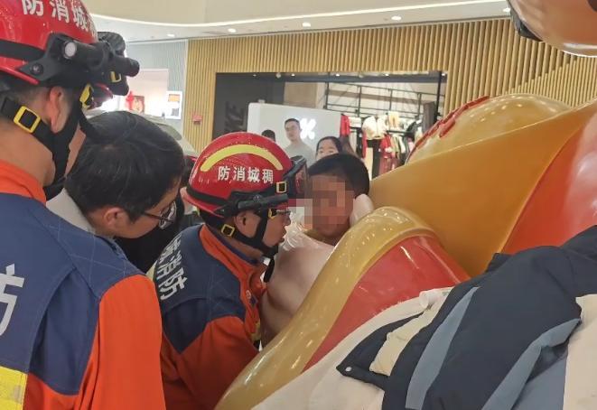 义乌商场惊现“招财童子”!男童头卡财神雕塑怀中被“强行留财”,消防员暖心救援现场堪比大片 当别的孩子还在追着爸妈要压岁钱时,浙江义乌的一名小男孩,已经用最硬核的方式,把自己“送”进了财神爷的怀里。就在前几天,义乌某商场内,一尊笑容可掬的财神雕塑,竟真的“显灵”了——它用那双虚握的黄金大手,轻轻“捧”住了一个小男孩的脑袋,说什么也不肯松开。 原来,这个充满好奇心的小家伙,在玩耍时一眼相中了财神爷掌心那处空隙,觉得那像个有趣的“山洞”,一头就钻了进去。没想到进去容易出来难,脑袋被卡得进退两难。商场工作人员急得满头大汗,连护手霜都当润滑剂用上了,可财神爷的“偏爱”实在太牢固。 接到报警的消防员们火速赶到,现场画面让人又揪心又有点忍俊不禁。男孩的小脑袋卡在财神金色的指缝间,身体悬空,像极了被命运之手轻轻捏住的“小元宝”。他没有大哭大闹,只是一脸懵懂,仿佛在思考:“财神爷爷,这份‘财运’能不能换种方式给?” 救援刻不容缓,但难度不小。雕塑是商场的重要装饰,强行破拆可能伤及孩子。只见经验丰富的消防员们,动作轻柔得像在对待一件珍宝。一人稳稳托住孩子的身体,另一人蹲下身,用最温和的语气引导:“宝宝,慢慢来,咱们像小乌龟缩脖子那样,试试看……”没有电锯的火花四溅,只有小心翼翼的托举和角度调整。 不到一分钟,奇迹发生了。在消防员专业的引导和托扶下,孩子的肩膀巧妙一转,小脑袋顺利地从财神掌心“滑”了出来。整个救援过程,快、准、稳,更充满了人性的温度。孩子脱困后一脸轻松,仿佛刚才只是一次特别的“拥抱体验”。围观群众悬着的心终于放下,现场响起一阵欣慰的掌声。 这场看似乌龙的事件,却像一面镜子,照出了好几层意味。它照见了孩子天真无邪、探索世界的好奇心,那份对“财神”形象毫无功利心的亲近,恰恰是最珍贵的童真。它也照见了守护者们的不易与专业,消防员那“力与巧”的结合,托举的是生命,更是责任。 当然,它也给我们所有人,尤其是家长,敲响了一记清脆的安全警钟。商场、公园里那些造型各异的雕塑、栏杆,在孩子眼中是乐园,却也暗藏风险。寒假已至,“神兽”出笼,看护的弦必须时刻绷紧。安全,才是孩子快乐成长最坚实的“财运”。 这个被财神爷“锁定”了五分钟的男孩,或许长大后才会明白,2026年开年这场特别的遭遇,真正的“财运”并非雕塑本身,而是那些为他伸出援手、温柔守护的陌生人。他们,才是现实生活中,真正为我们“兜底”的守护神。 (来源:综合浙江消防、北京日报客户端、网络热议) 寒假安全警示 暖心救援现场