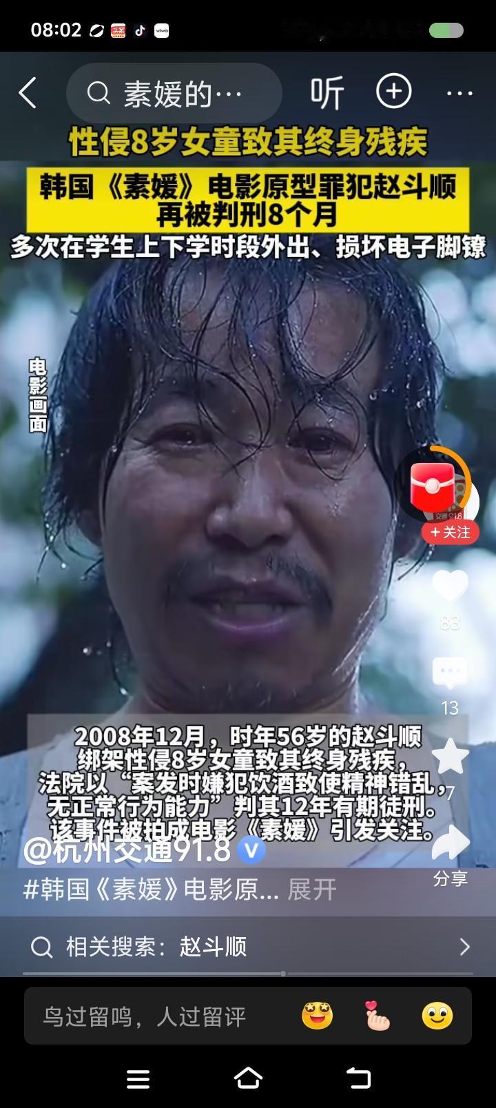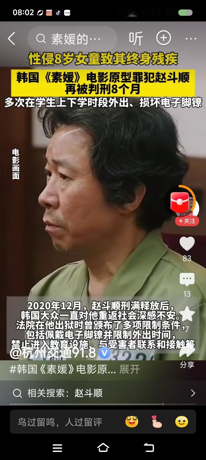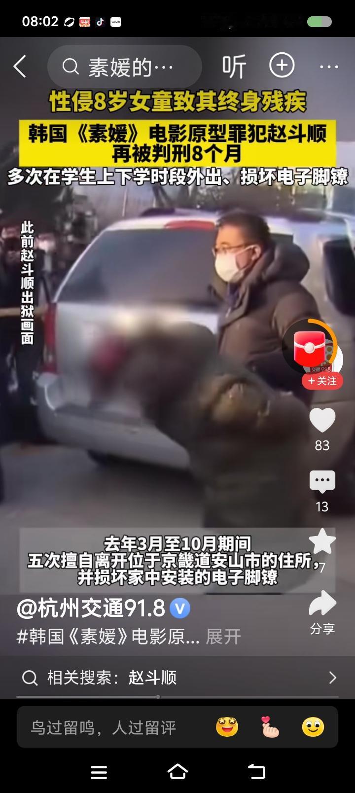 韩国,你叫憨国吧!—— 据报道,韩国一罪犯绑架强jian一名8岁儿童,导致其终身残酷。法院称其“酒后精神错乱,无正常行为能力”,判了12年。出狱后,多次违反限制令,在学生上学放学时段外出。再次判刑8个月。 点评: 8个月之后呢? 韩国司法是不是被欧美洗脑了?看起来很认真,实质上丧失公平正义,也和民主进步不搭界。 世界上有一类人,兽性主宰身体,完全是移动的禽兽。你怎么能用正常人的思维理解呢? 什么叫“酒后无正常行为能力”?有个人看见了美女,想入非非,干了坏事,法院能不能因“思维混乱行为失控”为由轻判呢? 一喝酒干坏事还有情可原了?那你怎么不酒后把你的钱散发给别人呢?怎么不酒后把街上垃圾扫一扫?怎么不酒后见义勇为行侠仗义?