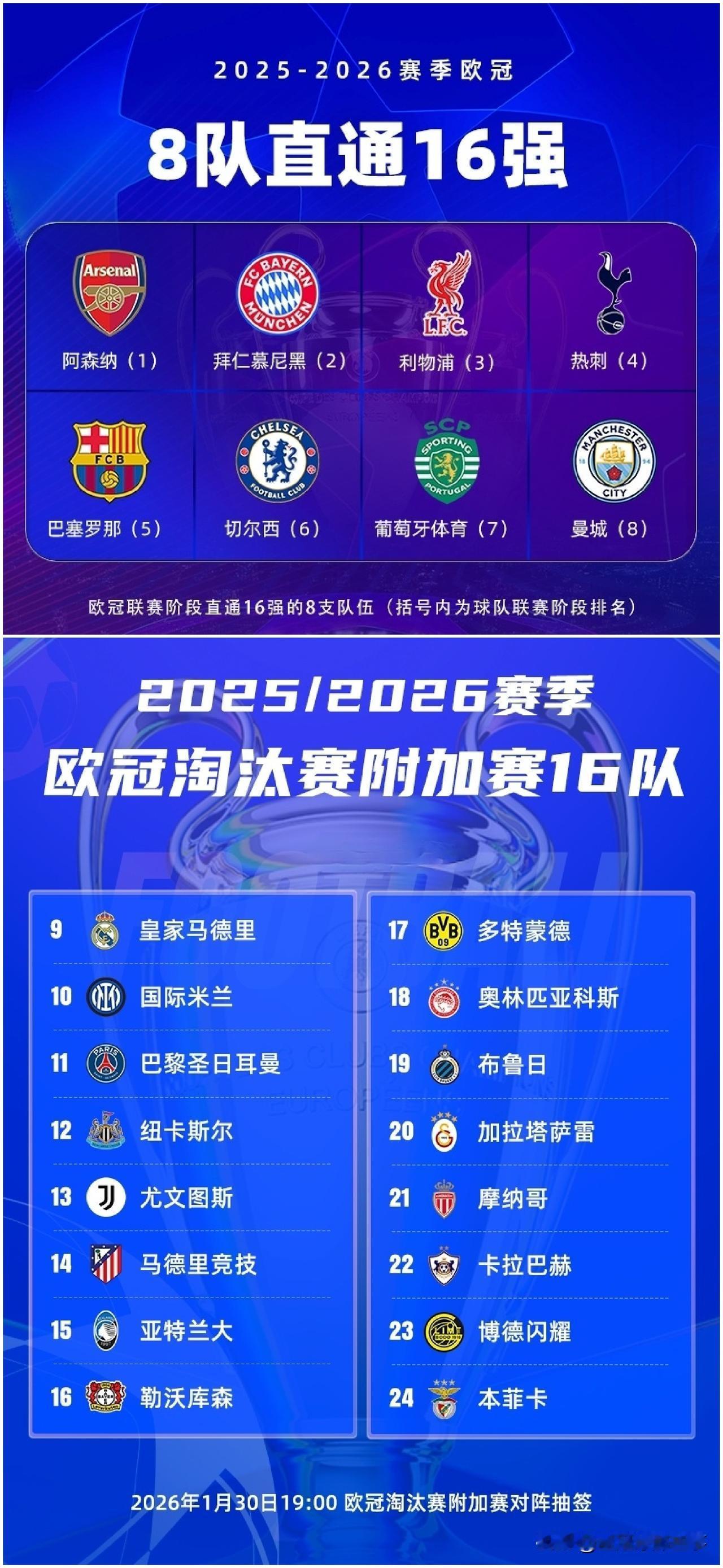欧冠小组赛结束直通和附加赛席位确定: ✅直通8个名额:5支英超外加西德葡各一支,热刺最大反差,葡萄牙体育最大惊喜; ✅附加赛16个名额:皇马末轮翻车进入附加赛出乎意料,巴黎圣日耳曼风光不再,最励志和最神奇属于穆里尼奥的本菲卡,博德闪耀和卡拉巴赫同样值得骄傲; ✅淘汰出局遗憾球队:意甲冠军那不勒斯、法甲劲旅马赛、还有埃因霍温和比利亚雷亚尔。