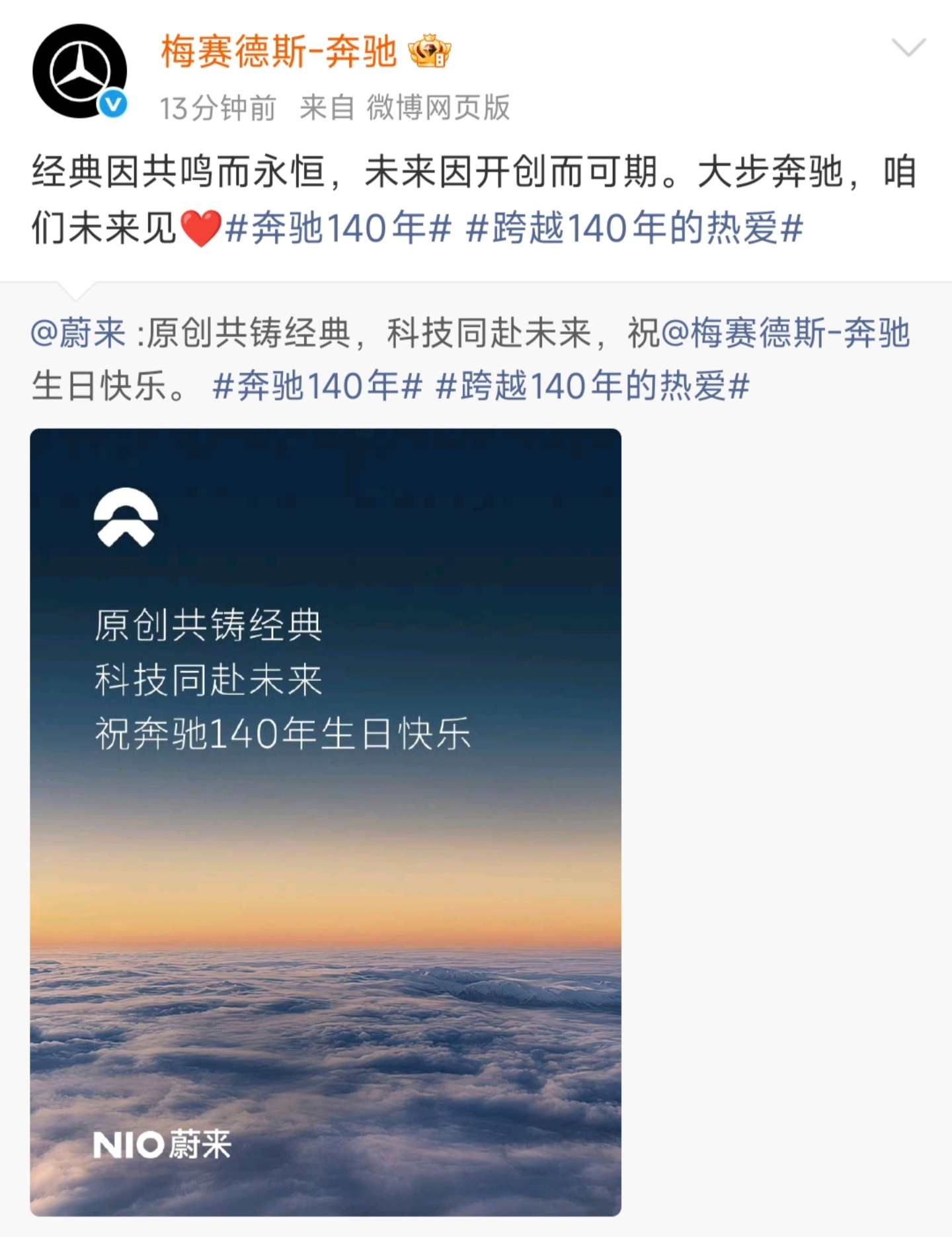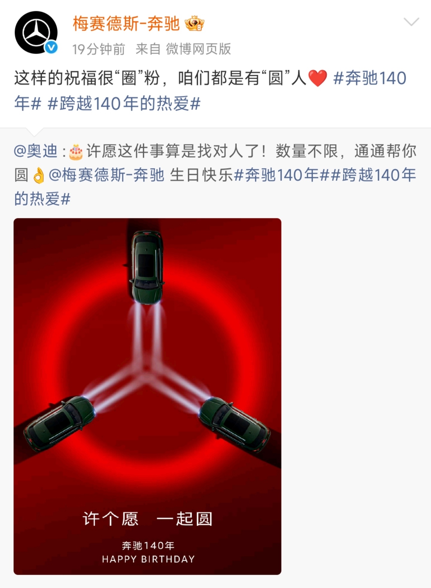 各个汽车品牌为奔驰140年生日送上祝福,奔驰也一一回应这样的场面真美好奔驰140年生日快乐