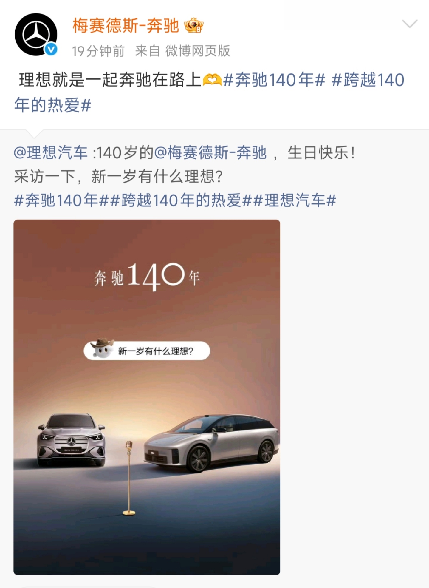 各个汽车品牌为奔驰140年生日送上祝福,奔驰也一一回应这样的场面真美好奔驰140