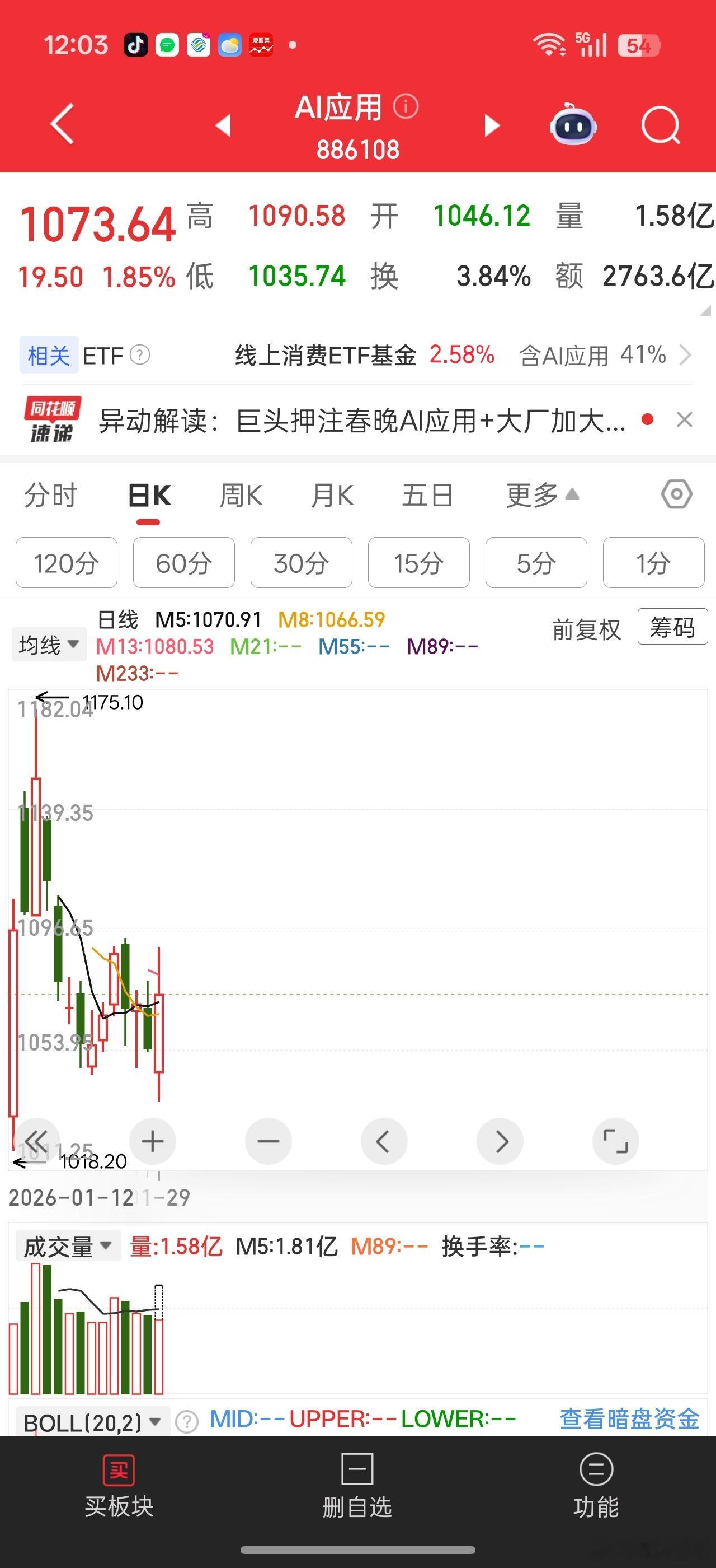 应用就看5日均线支撑了,回踩再弹起,板块反包可期。。。万一踩漏了,被资源股又抢了资金。。那就不太好办现在没破,先观望。。航天主要布局那些基本面有改善的,回踩到12月初得位置的,虽然可能弹性不高,但是安全一些,未来反包的几率也不低。。。其实按资源期货上涨,我们现在的A股应该早就6000点了,硬是压着其他板块。。。搞得市场极度割裂。。。确实有点不讲武德。感情只有大A能压,期货它们无能为力
