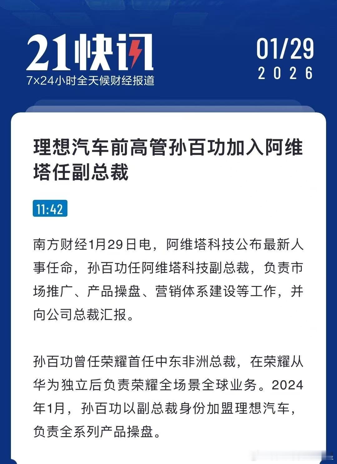我和汽车的日常大v聊车新央企新豪华新服务 这个差不多得有3个月了今天算是正式官宣了理想 荣耀前高管孙百功正式加入阿维塔担任副总裁职位是市场推广,品牌营销应该就是既前任CMO走了之后阿维塔官宣的新任CMO阿维塔因为进入到战略2.0时代需要深度和华为沟通对接各种事情品牌营销急需要一个懂新势力又懂华为。又在华为系呆过的高管来把营销拉稳 否则今年那么多新车节奏实在有点难搞大家如何看待理想高管加入阿维塔能不能把今年五台新车节奏带起来