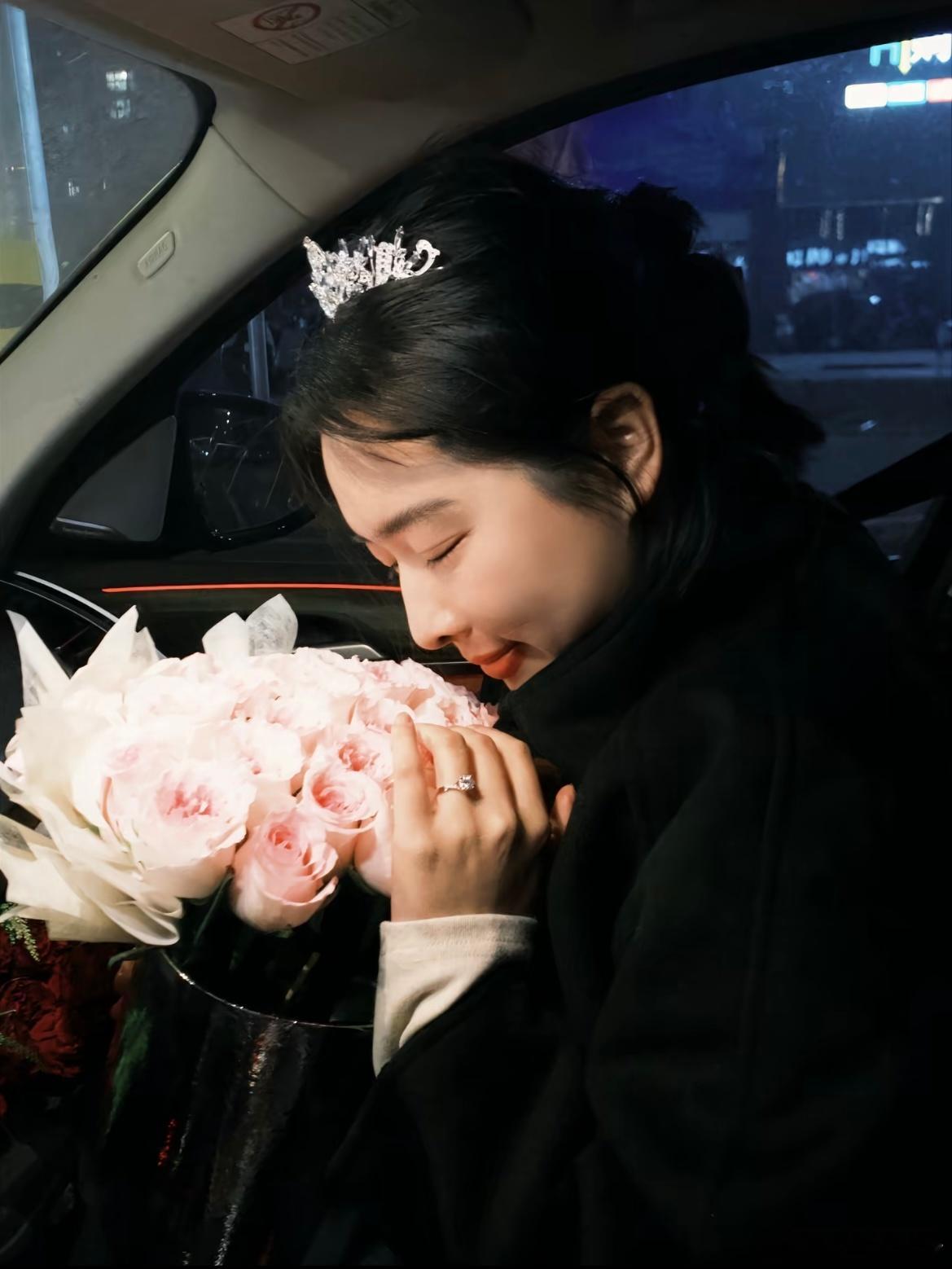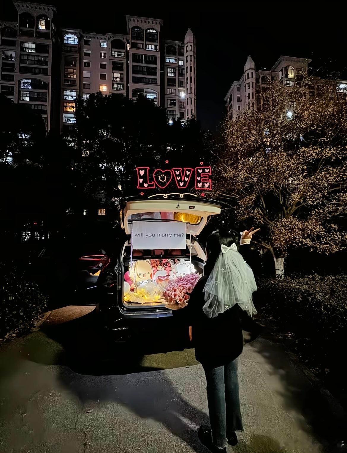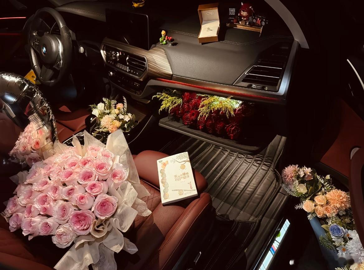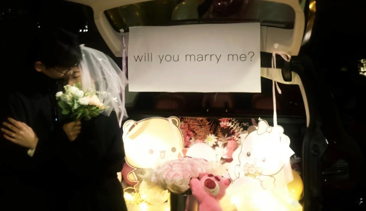 男朋友把副驾驶铺满了花花向我求婚