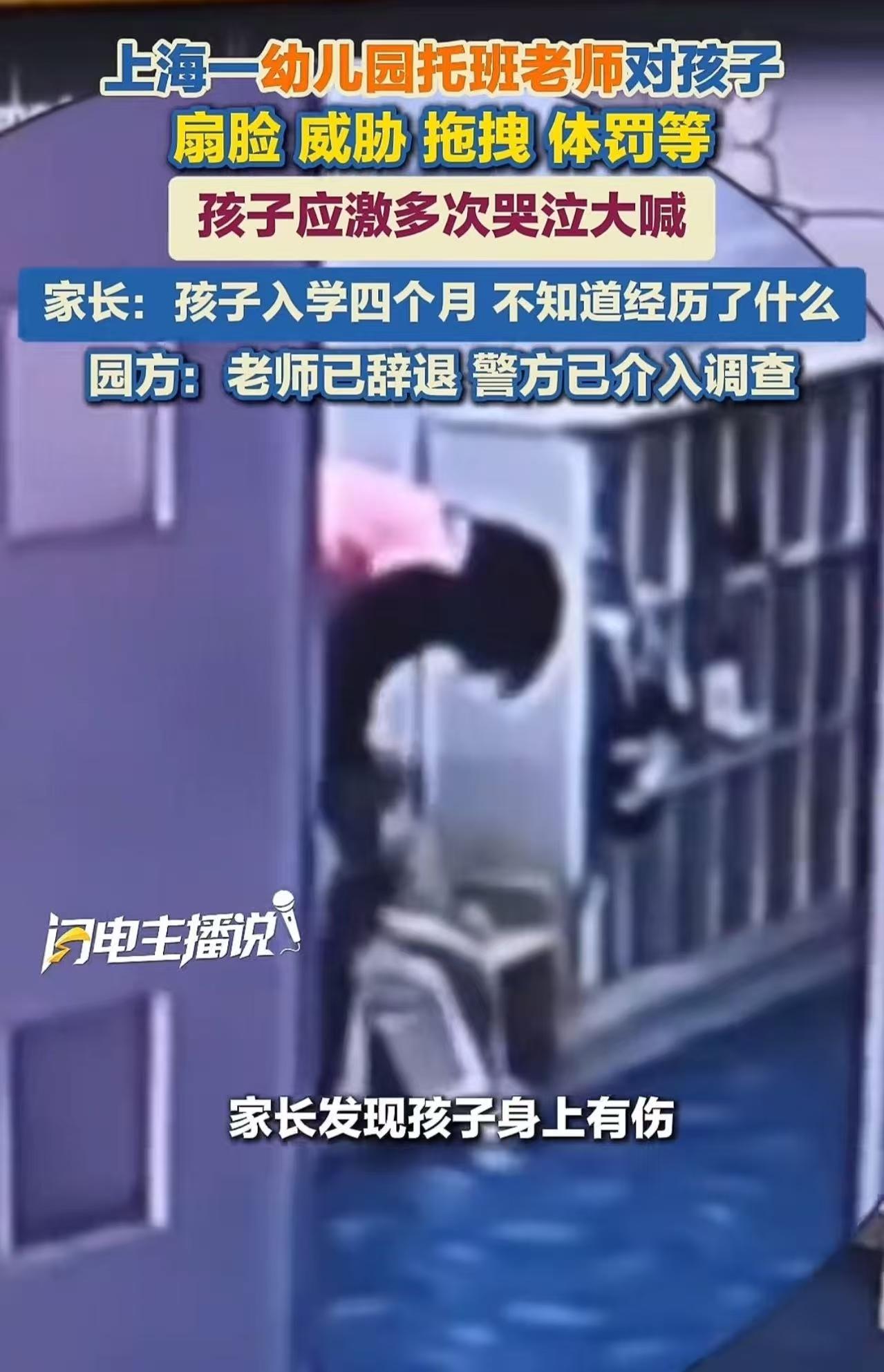 “枉为老师”!上海,孩子哭着不肯去幼儿园,洗澡时身上现淤青,家长觉得不对劲,一查幼儿园监控惊呆了!老师对多个孩子有扇脸、威胁、拖拽、体罚等行为,孩子被虐待应激多次哭泣大喊。可是幼儿园只是辞退了老师!网友:必须严惩这种恶魔! 3岁的小宇(化名)原本活泼爱笑,可近一个月却像变了个人——每天早上一提“去幼儿园”,就浑身发抖、嚎啕大哭;夜里频繁惊醒。 起初,家长以为是“分离焦虑”,直到那天给孩子洗澡——后背、手臂上赫然几块青紫淤痕! 想到孩子的种种异常反应,家长怀疑孩子被老师虐待,立刻报警。 警方调取幼儿园监控,短短两天的画面,让母亲当场瘫坐在地:老师徐某因孩子吃饭慢,一把抓起衣领拖行数米,重重摔在墙角;一名女童因尿裤子,被扇耳光,还被威胁:“再哭就把你扔进垃圾桶!”多个孩子被罚跪在冰冷地板上;有孩子吓得失禁。 更令人心碎的是,小宇在视频中多次蜷缩角落,双手抱头,反复哭喊:“妈妈救我!我不敢了!” 在家长要求之下,徐某等该班保教人员被辞退,孩子被安置到附近的公办幼儿园。 但家长表示,徐某的虐童行为应该受到应有的惩处。但事情过去一个多月了,仍没有下文。 幼儿园园长表示,警方已介入调查,目前正在等待调查结果。 孩子夜夜噩梦,已确诊创伤后应激障碍(PTSD),而施暴者,或许正拿着遣散费,在另一家幼儿园重新上岗。 网友炸锅: 辞退?不够!必须入刑!“虐童不是‘管理失当’,是暴力犯罪!辞退等于零成本作恶,必须坐牢!” “建议每个教室安装监控,孩子上学监控连家长手机 可以随时看到孩子 这样才能放心!” “全国被爆出太多这种事件了,上海这种大城市都有这种情况发生,真的要出政策了!” 【观点解析】 辞退一个虐童老师,不过是给溃烂的伤口贴了张创可贴——治标不治本,甚至掩盖了系统性失职。 当一所标榜“高端托育”的幼儿园,能容许教师对幼儿扇耳光、言语羞辱长达数月; 当警方介入一个多月仍无实质进展;当“辞退”成为万能免责金牌—— 我们不得不问:孩子的身体和心灵,在某些人眼里,到底算不算“人”? 心理学早已证明:3-6岁是人格奠基期,一次暴力恐吓,足以摧毁孩子一生的安全感。如果法律继续纵容“虐童=丢工作”,那么明天,还会有无数个徐某,在另一间教室,对另一个小宇举起手。 真正的儿童保护,不是事后辞退,而是事前预防;不是家长哭着查监控,而是制度长出牙齿。 一个文明的社会,从如何对待最弱小的孩子开始。若连幼儿园都不能成为安全的港湾,那所谓的“未成年人保护法”,不过是建立在孩童眼泪之上的空中楼阁。