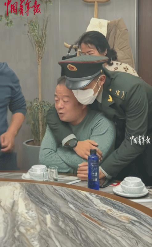 泪目!河南安阳,一个当兵两年的小伙子请了探亲假,没跟家里说,先回到家门口打听到一家人正去饭店聚餐,他就拎着包直接去了,推开包间门,绕到他妈那一侧,把椅子拉开坐下,肩上的军装还没放平,他妈抬头看到人,整桌人也看过去。 这是一场关于只有60秒的“战术突袭”,却铺垫了整整700多天。 时间回拨到2025年12月,河南安阳。冬日的街头寒意逼人,但对于一个离家两年的现役军人来说,这点冷风早已被胸口那团即将爆发的火焰吞噬。 这大概是全天下游子最喜欢玩的一场心理博弈:手握一张获批的探亲假条,却选择对最亲的人保持无线电静默。这其实是一场豪赌,赌注是让父母多承担几日的思念与担忧,去换取推门那一刻,情绪如核裂变般的瞬间释放。 但他差点就输在了最后一百米。当他熟练地把钥匙插进家门锁孔,金属撞击的清脆声响后,迎接他的不是饭菜香,而是一室冷清。 这一刻的扑空简直是戏剧性的反高潮。如果是普通人,大概此时就会掏出手机拨通电话,宣告惊喜流产。 但他没动手机。关键情报来自隔壁邻居——这位“编外侦察员”一眼认出了穿着军装的小伙子,指出了精确坐标:全家人正在附近的饭店聚餐。 于是,原本的终点线被拉长,他拎起行囊,像执行急行军任务一样转向了那个喧闹的坐标。 此时的饭店包间里,空气不仅是热的,还是稠的。饭菜的香气和推杯换盏的欢笑声编织成了一道厚厚的屏障。这道屏障如此有效,以至于当包间的门被悄无声息地推开时,满屋子的人竟无一人察觉。 在那一两分钟里,他就像一个透明的幽灵,站在喧嚣的边缘。看着眼前这幅甚至有些陌生的全家福——父母眼角的纹路似乎又深了,家人的笑容那么近又那么远。 他没有喊“爸、妈”,而是选择了一条最安静的潜入路线。 他绕过视线的死角,走到了母亲身侧。动作轻得像怕惊扰了一只停在花瓣上的蝴蝶。轻轻拉开椅子,身体下沉,落座。 请注意这个瞬间的物理细节:因为这一连串动作太过连贯且急切,当他坐稳时,肩上的军装甚至还没来得及放平。那微微隆起的布料褶皱,是七百个日夜的奔波与此刻迫不及待的最后注脚。 此时的母亲正在做什么?她或许正准备给谁夹菜,或许正想说个笑话。就在她无意间抬头的瞬间,视野里突然闯入了一抹熟悉的军绿。 那一秒,时间仿佛被抽走了所有声响。 笑容僵在脸上,这不是形容词,是肌肉记忆的突然断电。悬在半空的筷子停住了,像被按下了暂停键的电影画面。大脑在疯狂处理眼前的信息,试图将记忆中那个两年前的背影与眼前这个挺拔的轮廓重叠。 直到第一滴眼泪砸在餐桌上,逻辑才重新上线。 那一刻的饭桌,嘈杂声像潮水般退去,只剩下母亲压抑的抽泣声填满空间。紧接着是全桌人的震惊、起立、拥抱。那个曾在襁褓中的孩子,那个两年前懵懂离家的少年,如今已是一身戎装的钢铁长城。 事后,这段视频在网上引发了一场关于“惊喜成本”的辩论。有人说:“要是提前通知,父母能多高兴好几天。”也有人反驳:“那种心脏漏跳一拍后的狂喜,才是金不换的瞬间。” 这或许就是中国式亲情的独特张力。在门外,他是守卫万家灯火的战士,铁骨铮铮。拉开椅子坐下的那一刻,他又变回了那个会让母亲筷子悬空的孩子,柔情似水。 那天在安阳的饭桌上,多了一副碗筷,也多了一份失而复得的圆满。对于这个家庭来说,所有的菜肴在那一刻都成了配角,因为最好的那道菜,叫做平安归来。 参考信息:中国青年报. (2025-12-10). 士兵两年后探亲突现身,家人惊喜泪目