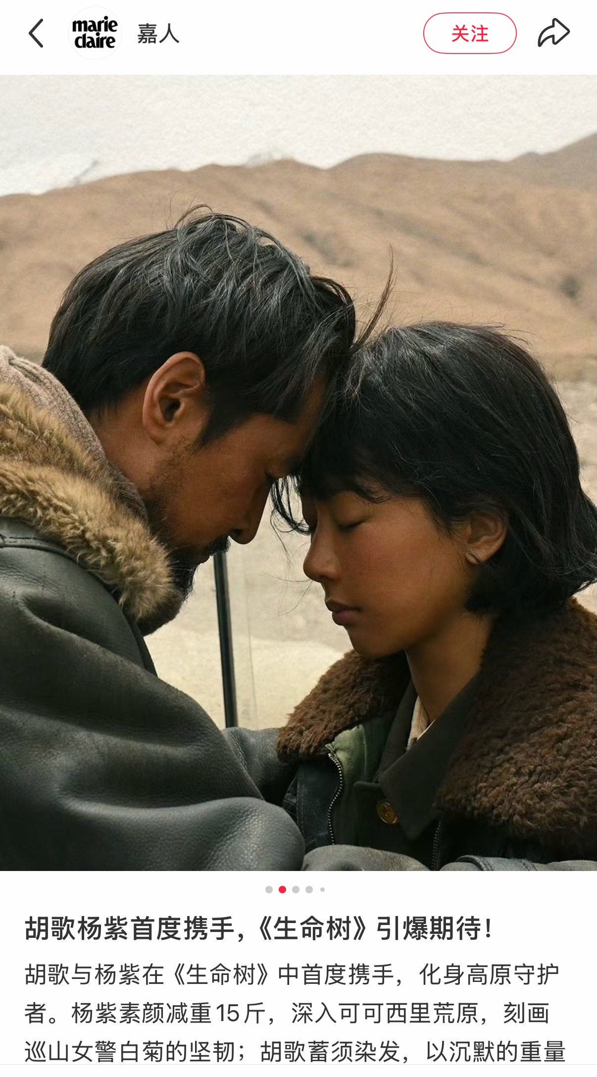 嘉人杂志:杨紫拍摄生命树期间,素颜减重15斤,深入可可西里荒原。真是能吃苦的好演员