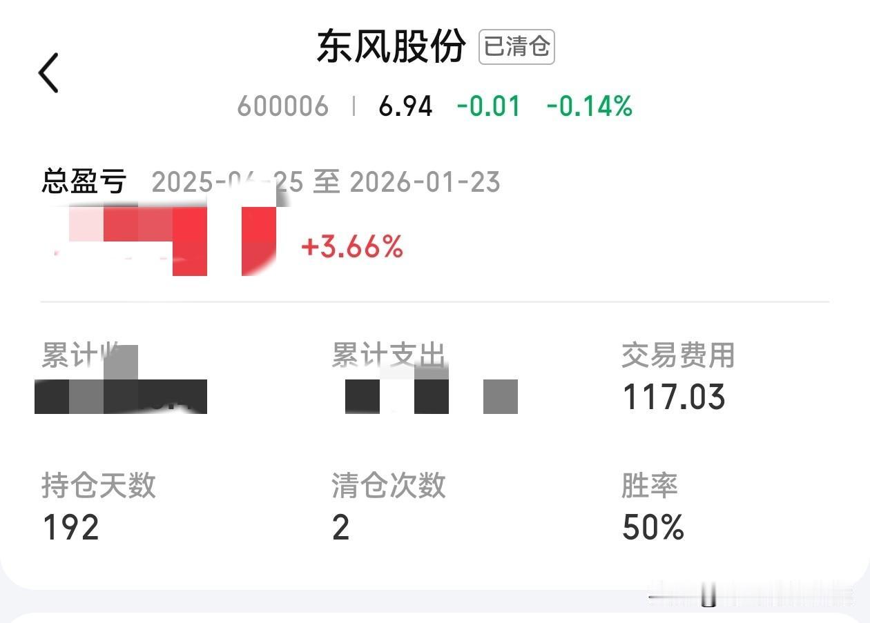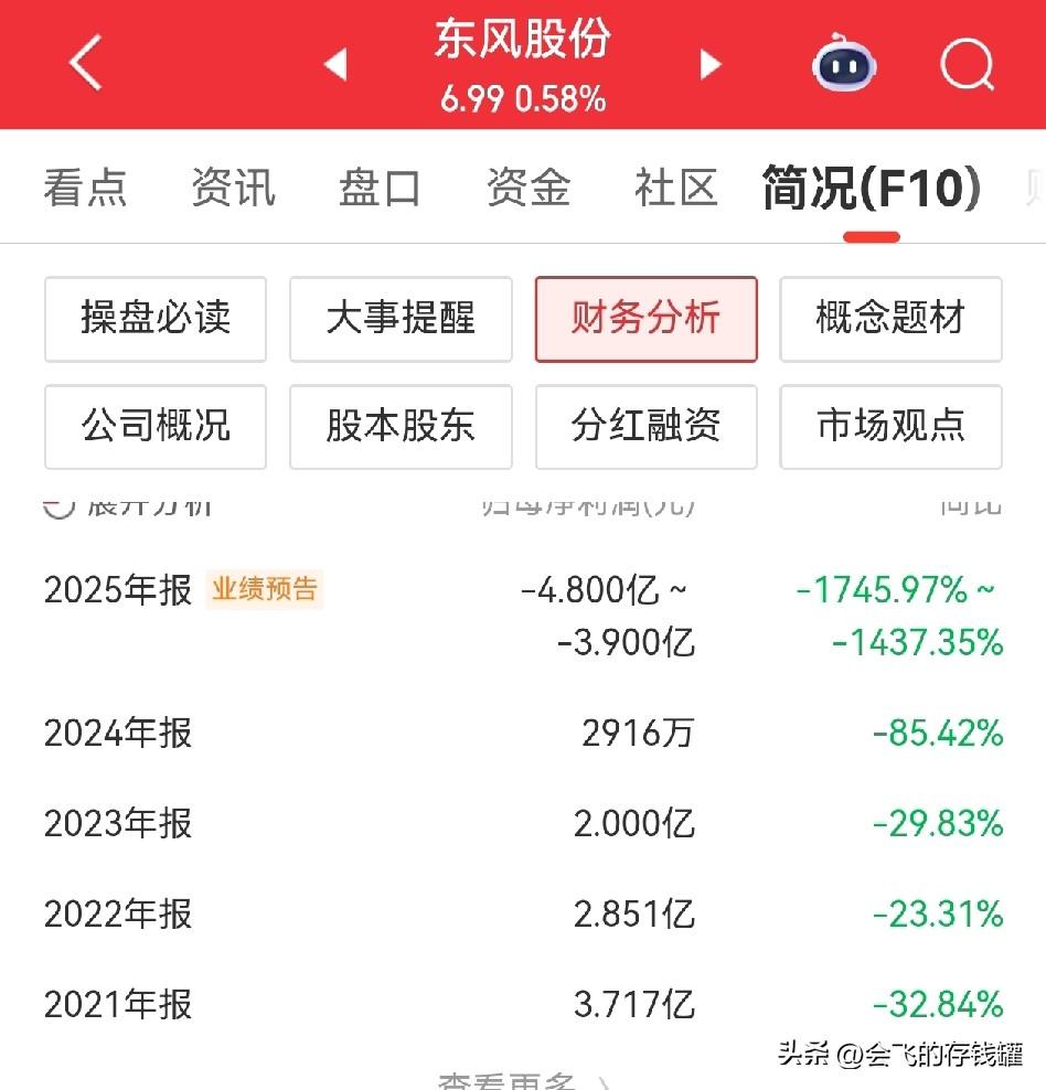 东风股份太让人失望了,业绩预告亏损,同比减少超过1000%,公告出来第二天早上我就挂卖盘卖出了。 去年我重新开了一个号,放了一些小钱,买入了东风股份,高点的时候收益率达20%。 但因为低估了东风股份业绩亏损得严重程度,没有落袋为安。最终收益只有3.66%,坐了个过山车。 东风股份这波操作真的是实打实的教训:账面资产始终都不真实,落袋为安的那一刻才是最真实的收益。 曾经攥着浮盈沾沾自喜,实则低估了业绩雷的杀伤力,终究是坐了趟过山车,把到手的利润生生缩水。 这也让我彻底明白,炒股从来不是赌浮盈的高低,而是要守落袋为安的底线,更要敬畏市场的不确定性。 利好出尽是利空,业绩预告的任何风吹草动都不能心存侥幸,浮盈永远只是数字,只有真正兑现到账户里的,才是实实在在的收益。 哪怕是小资金试错,也得守好操作纪律,该止盈时绝不犹豫,该避险时果断抽身,永远别让贪婪和侥幸,磨掉自己对市场的敬畏心。 东风汽车 央企东风集团