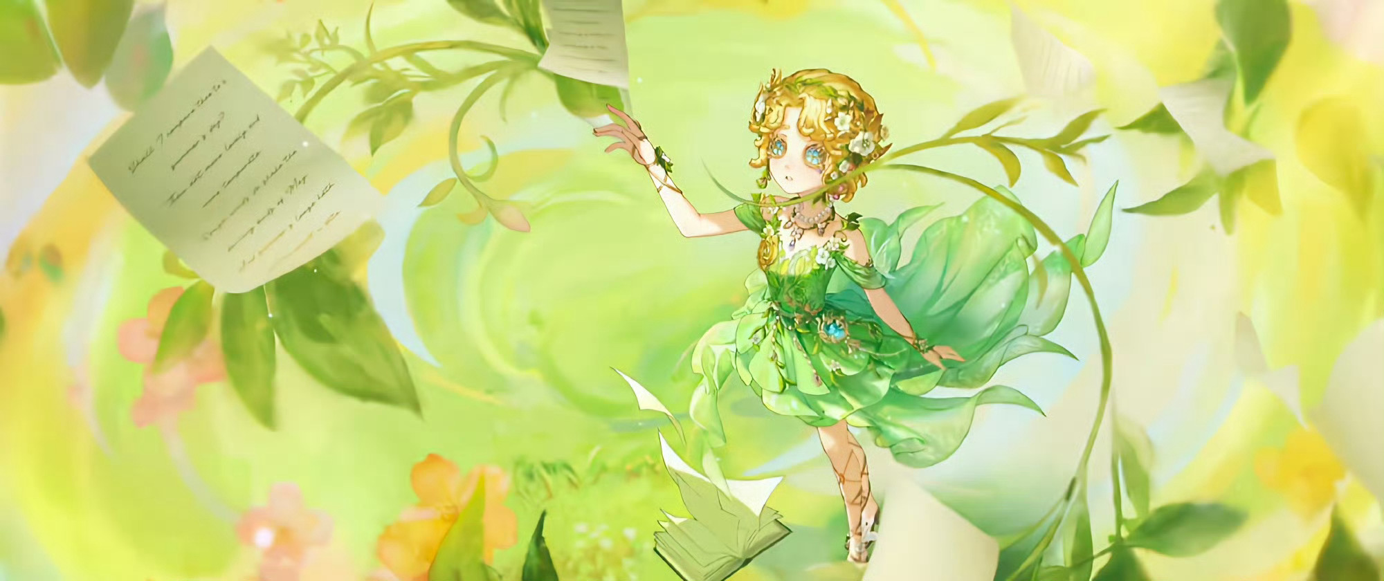 第五人格第五人格园丁这个配色清爽又温柔的园丁皮肤,金发上的小花和叶片裙摆的设计,