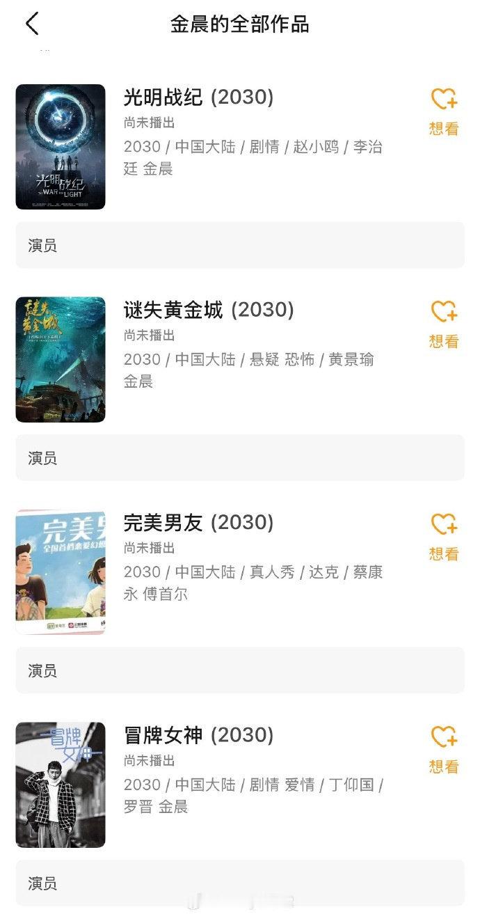 金晨的待播金晨待播待拍作品一览金晨的待播,金晨待播待拍作品一览,咱就说还有这么多的作品啊,期待住接下来能够正常见面啊~ 金晨 亲爱的X
