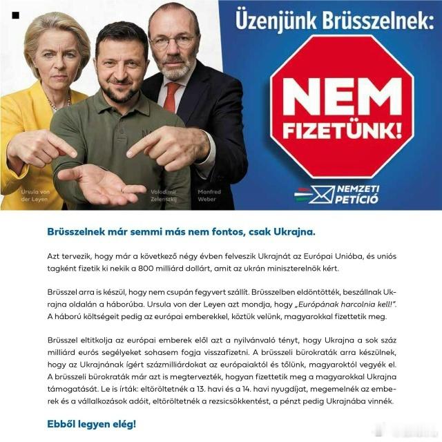 匈牙利发起全国请愿,呼吁欧盟停止资助“乌克兰”。匈牙利再次成为欧盟内反战和反体制