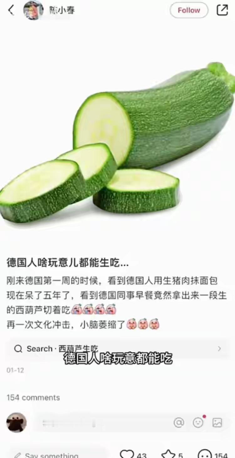 德国姑娘在网上吐槽自己的中国男朋友一天要吃三顿热饭,她认为没有这么多时间去做饭。 她也不会做。 德国姑娘会吐槽,是因为德国人的三餐很简单,啃块面包吃个土豆吞个汉堡三餐解决,得有大节日才会乱炖一锅热乎的! 而她的中国男友三餐都要吃热饭,鱼肉菜不可少。 从中国恋人的饮食习惯可以看出中国两国的饮食差距很大! 德国人吃饭很简单,只是为了填饱肚子。 而中国人吃饭不是简单的填饱肚子,而是让生活更美好! 既然和中国人结合,这位德国姑娘就不要吐槽了!有空学习一下中餐的制作,时间久了就会明白这才是生活,有口福的人生活会更美好。