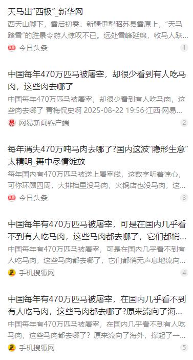 中国每年有470万匹马被屠宰,可是在国内几乎看不到有人吃马肉,这些马肉都去哪了?原来,它们都悄无声息地流向海外,构建起一个年产值数十亿元、却鲜少人知的“隐形帝国”。 麻烦看官老爷们右上角点击一下“关注”,既方便您进行讨论和分享,又能给您带来更多优质的内容,感谢您的支持! 农业机械化的普及,让曾经在田间地头、牧区山野劳作的役用马彻底失了业,国内对役用马的需求几乎跌至谷底。养马的牧民和养殖户们顺势转变思路,把马匹的用途转向肉用和出口,这也让国内马肉的产出量持续走高。 如今国内每年屠宰的马匹数量达到 470 万匹,可在我们的日常生活里,不管是菜市场还是餐馆饭店,都几乎见不到马肉的身影。这背后不是马肉没有去处,而是国内市场对马肉的接受度极低,鲜少有人愿意食用。 国人不爱吃马肉,核心原因还是文化情感上的羁绊。在千百年的发展中,马早已不只是牲畜,它是战场上的战友,是赶路时的伙伴,老马识途、一马当先这些成语,更是刻进了民族的记忆里,这种情感让人们很难把马当作食材。 即便新疆、内蒙古等少数牧区有食用马肉的传统,做熏马肠、马肉抓饭这些特色美食,但也只是小众的饮食选择,根本形成不了规模性的国内市场。也正因如此,国内产出的海量马肉,大多都走上了出口海外的道路。 这股流向海外的马肉潮,悄悄撑起了一个年产值数十亿元的马肉出口产业,成了鲜为人知的 “隐形帝国”。而这个产业能站稳脚跟,核心是海外有着成熟且旺盛的马肉消费需求,不少国家都把马肉当作优质食材。 日本、哈萨克斯坦是中国马肉出口的核心市场,法国、意大利、比利时等欧洲国家也有稳定的需求。在日本,马肉被称作 “樱肉”,低脂高蛋白的特点让它成为高端食材,刺身形式的樱肉更是颇受追捧,欧洲国家则常把马肉做成火腿、鞑靼料理。 哈萨克斯坦对马肉的需求更是刚需,当地漫长的冬季里,熏马肠、马肉汤是餐桌常客,其市场上八成的马肉供应都来自中国,这份需求让中哈之间的马肉贸易一直保持着稳定的态势。 为了契合海外市场的需求,国内的马肉产业早已形成了完整且成熟的产业链。从内蒙古、新疆的规模化肉用马养殖基地,到山东、河北的专业屠宰加工中心,各个环节都形成了标准化的运作模式。 马匹被屠宰后,会经过精细的分割处理,按照不同部位做成冷冻肉、分割肉,再通过专业冷链运输送往天津、青岛等港口。国内还在部分产区建起了符合国际检疫标准的马产业园区,保障出口的各项流程合规。 这样的产业布局,也让中国马肉在国际市场上拥有了价格优势,国内马肉的收购价偏低,出口后的国际售价却能翻上数倍,在日本市场,优质马肉的售价甚至能达到每公斤 300 至 500 元,利润空间十分可观。 这条马肉出口的产业链,不仅让国内的马资源得到了有效利用,更是畜牧业结构调整的一个缩影。对于新疆、内蒙古等马匹养殖集中的地区来说,马肉出口创造了可观的外汇收入,也给当地养殖户提供了稳定的变现渠道。 从养殖端的牧民,到加工端的工人,再到物流、报关等环节的从业者,整个马肉出口产业带动了大量就业,让不少边疆地区的群众靠着这份产业实现了增收,成了地方经济发展的一股助力。 但这份看似红火的 “隐形生意”,背后也藏着不少亟待解决的问题。整个马肉出口产业的监管透明度还有待提升,不同养殖基地的饲养标准参差不齐,部分产区还存在动物福利标准不达标的情况。 更关键的是,这个产业对海外市场的依赖度过高,国内九成以上的马肉产品都用于出口,几乎没有抗风险的能力。一旦进口国调整食品检疫标准、提高关税,或是出台相关贸易限制政策,国内的马肉产业都会受到直接冲击。 如今国内已有部分地区看到了马肉出口的利润,开始以出口为导向,主动扩大肉用马的养殖规模。这种盲目扩张的行为,很容易引发产能过剩的问题,让市场供需失衡,最终损害养殖户的利益。 同时,随着国际社会对食品生产、动物福利的要求越来越高,中国的马肉出口产业也正被放在更高的标准下审视。如果不能尽快统一养殖、加工标准,完善监管体系,提升产业的规范化程度,未来的出口之路只会越走越窄。 这个年产值数十亿元的马肉出口 “隐形帝国”,是文化差异造就的特殊产业,也是国内畜牧业转型升级的一次尝试。它既让闲置的马资源产生了经济价值,也给我们提了醒,任何产业想要长久发展,都得兼顾效益与规范,找到自身的核心竞争力。 未来的马肉出口产业,唯有在保证产品品质的基础上,完善产业链条,适度拓展多元市场,同时补齐监管和标准的短板,才能摆脱对海外市场的过度依赖,真正走得稳、走得远,让这份 “隐形生意” 变成经得起考验的正规产业。