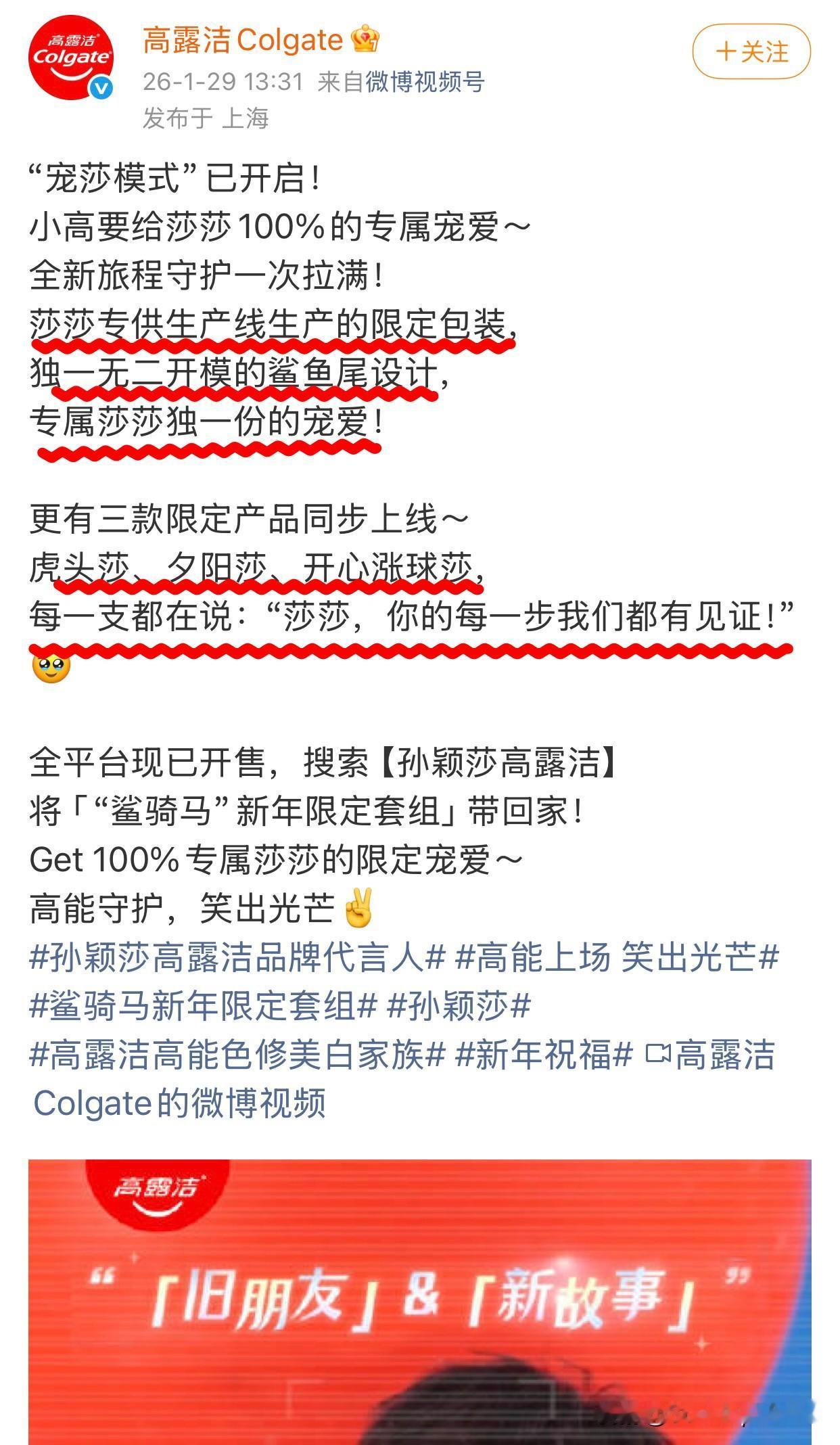 高露洁为莎莎专门开了一条生产线,不得不说,太用心了👍 高露洁官宣和莎莎续签成功,然后拍摄了全新的视频,也在全国各地投放了大屏, 今天宣布,将单独开模,设置专门的生产线, 生产三款莎莎的限定包装产品。 说品牌方聪明,会抓时机,但实际上是真的用心,所以他的销售更好,这也是有原因的。
