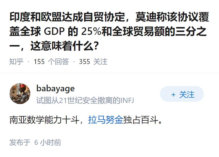 印度和欧盟达成自贸协定,莫迪称该协议覆盖全球 GDP 的 25%和全球贸易额的三分之一,这意味着什么?