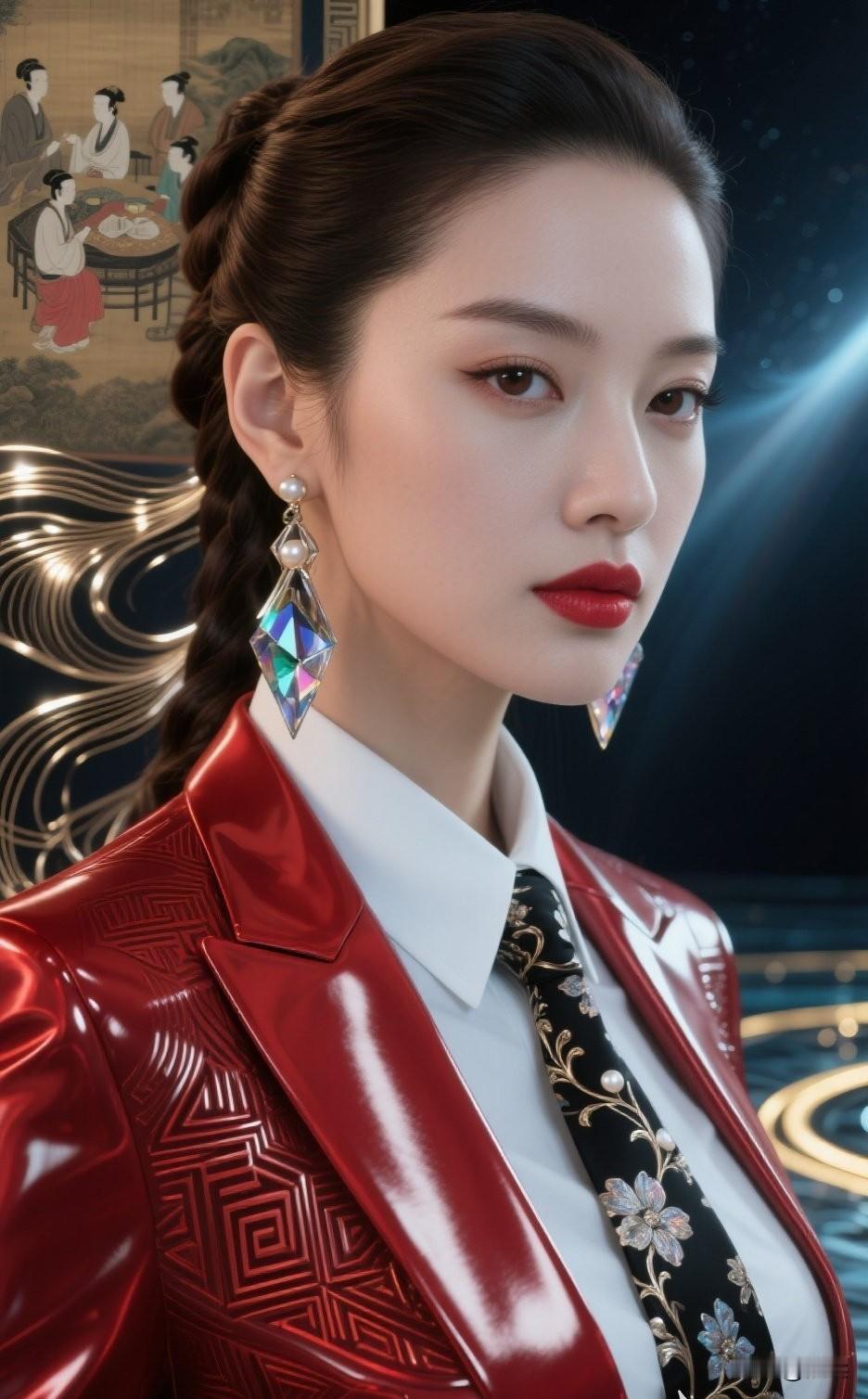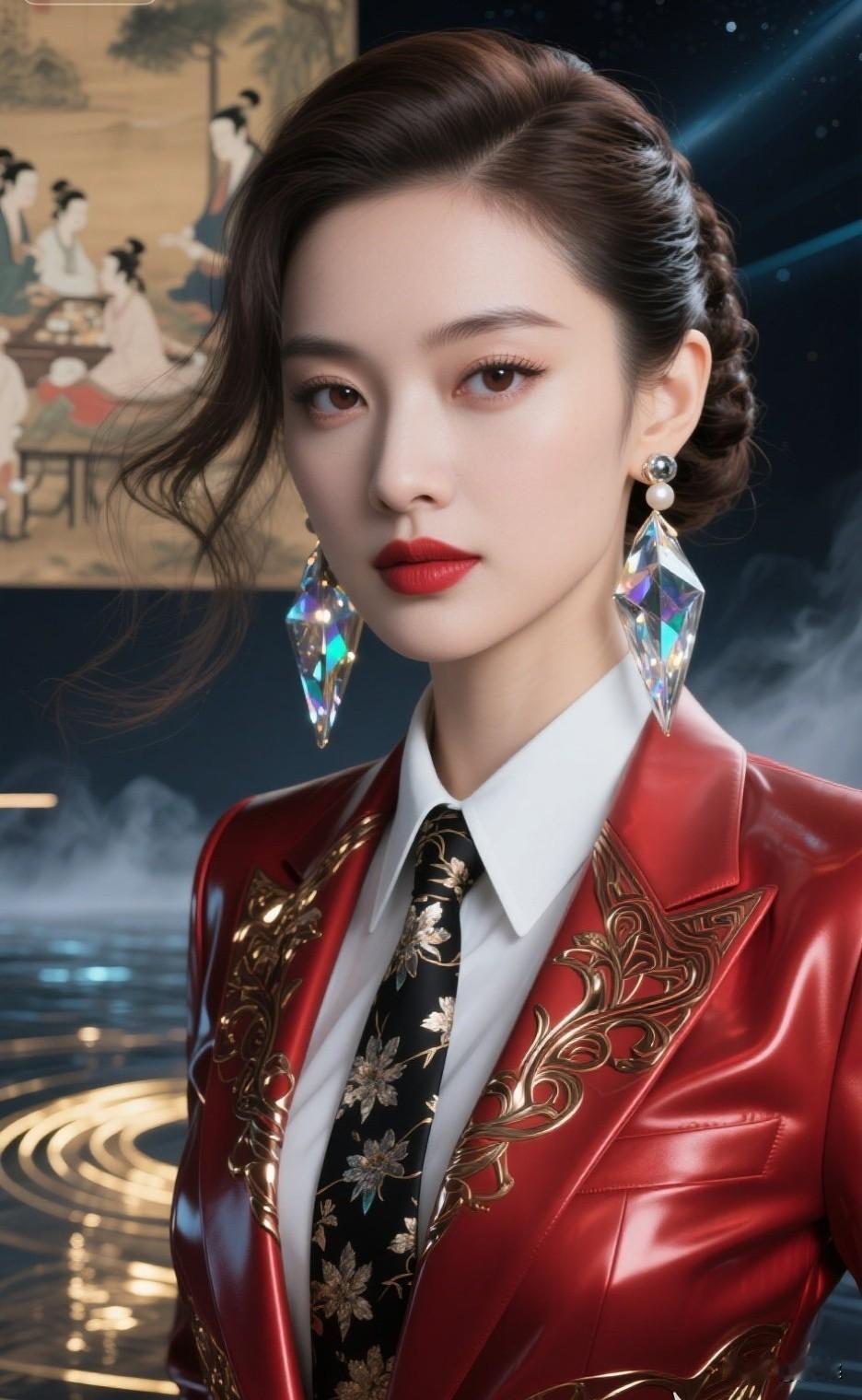 穿越时空的古典美人,红白相间的旗袍,韵味十足!