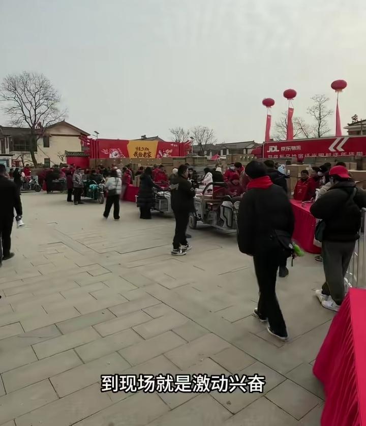 刘强东回老家江苏宿迁给乡亲们发年货现场真热闹! 村民们脸上洋溢的笑容,就知道大